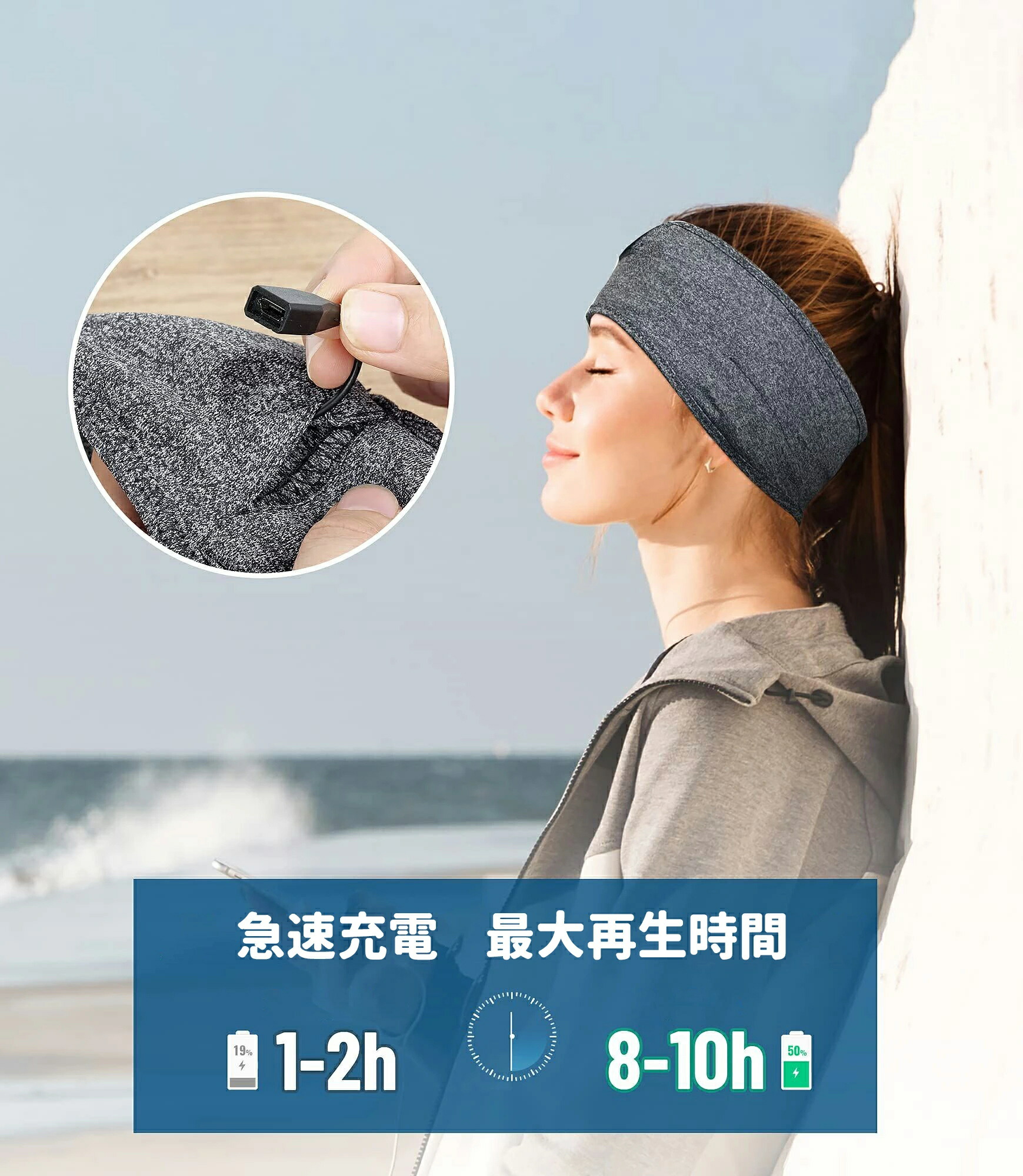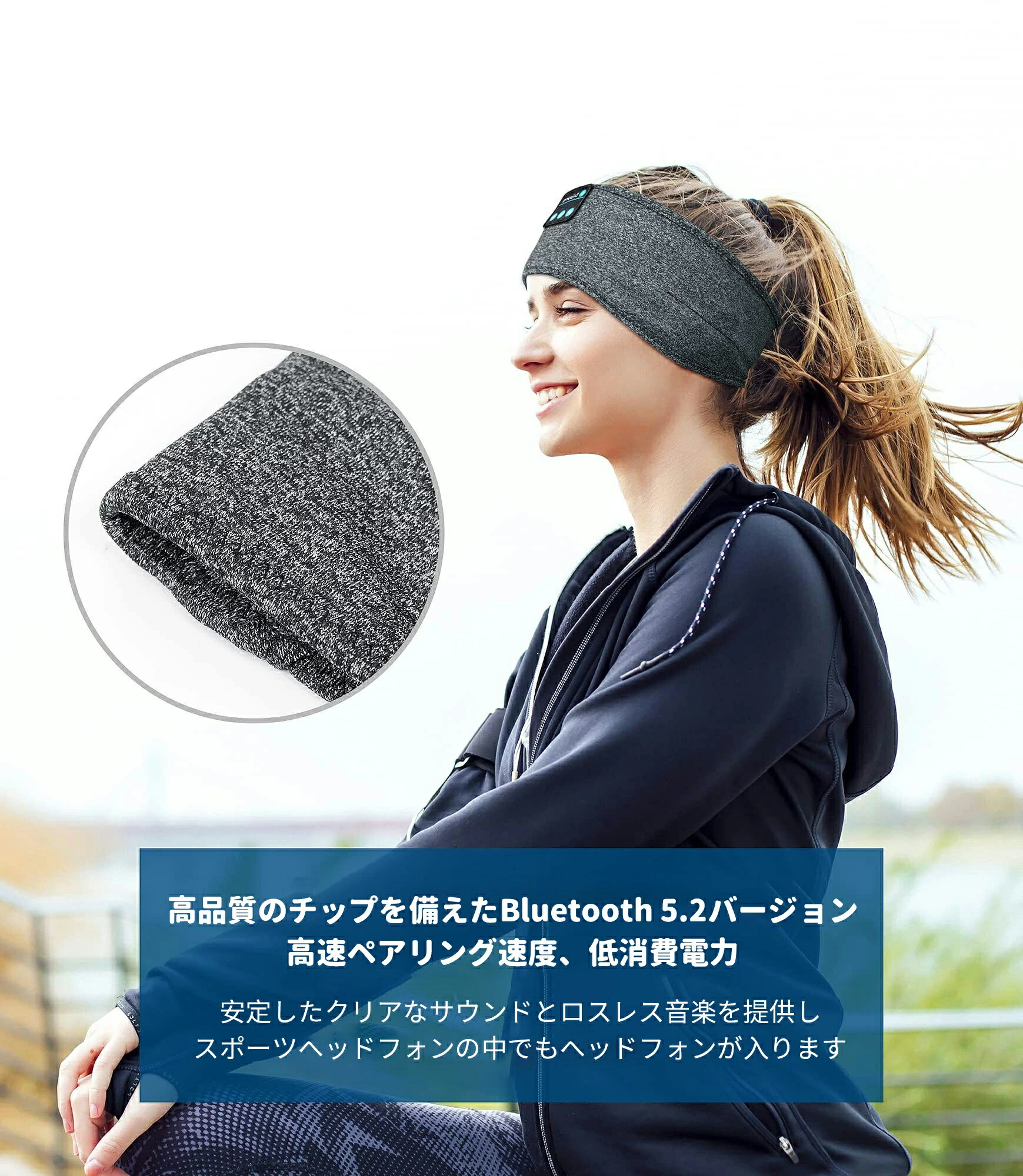 スリープヘッドフォン Bluetoot グレー ブラック