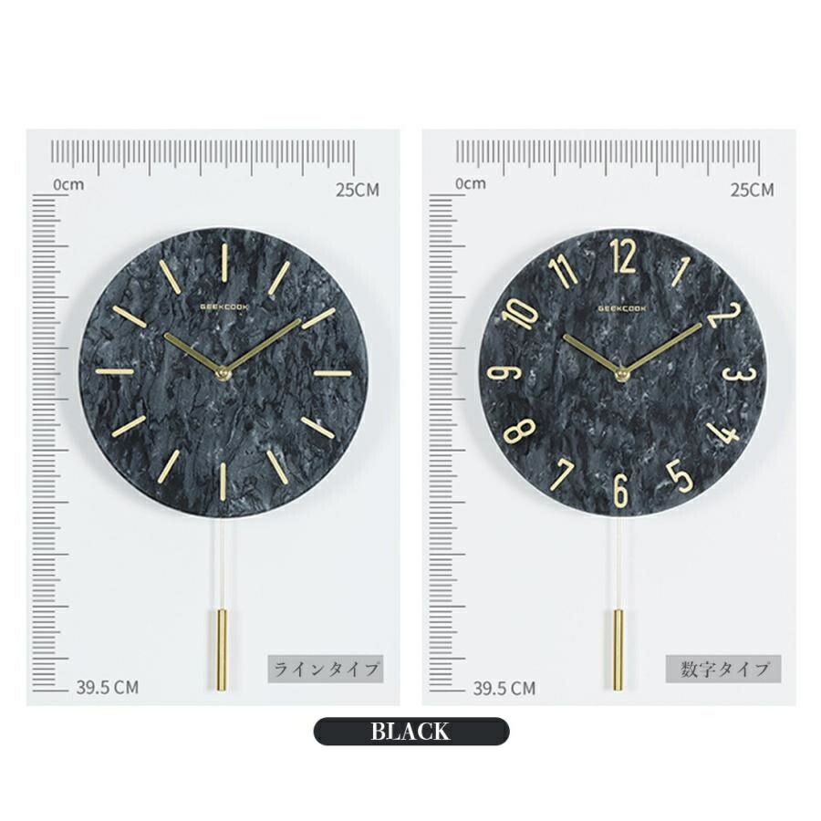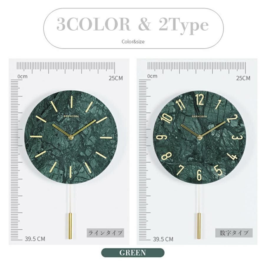 壁掛け時計 振り子 掛け時計 天然石 数字 直線 グリーン ブラック ホワイト