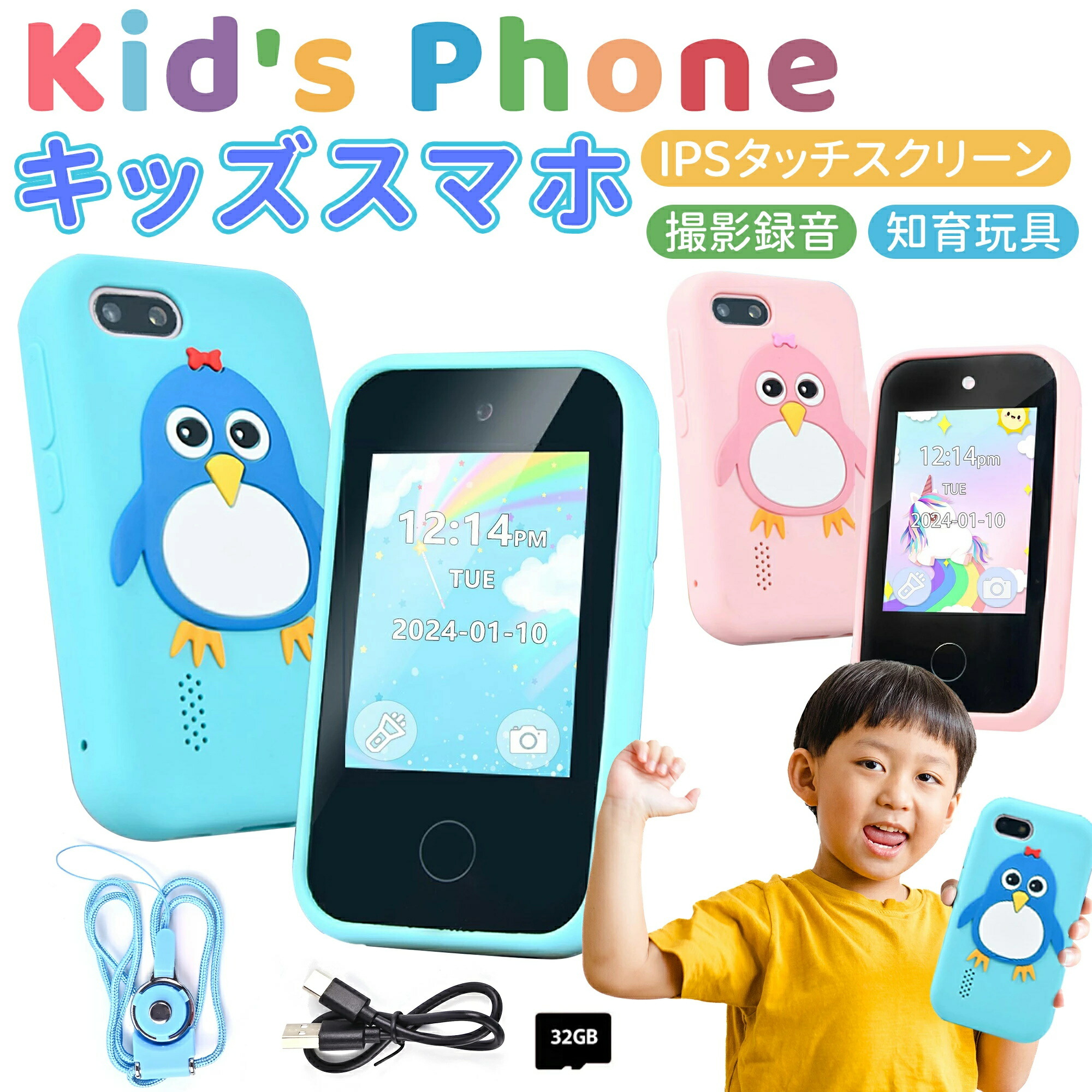 新発売 キッズスマホ 子供用スマートフォン 子供携帯電話 知育おもちゃ 知育玩具 おもちゃ タッチスクリーン 撮影録音 デュアルカメラ 自撮り 32GBラム 知育ゲ-ム 英語学習 大容量バッ 音楽再生