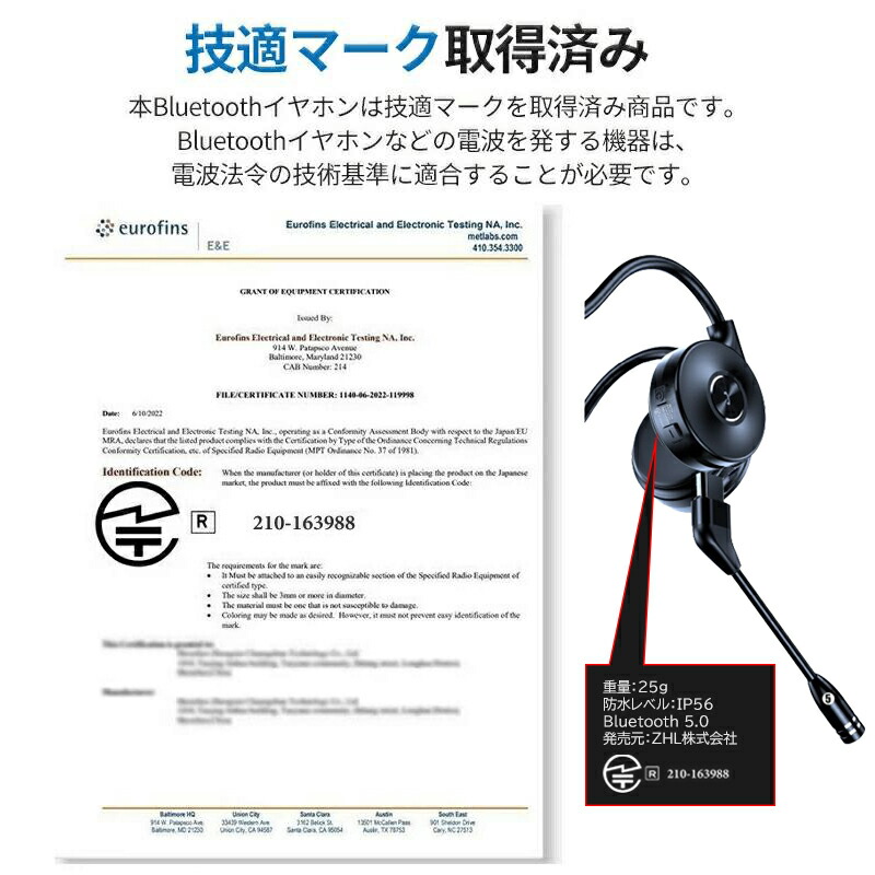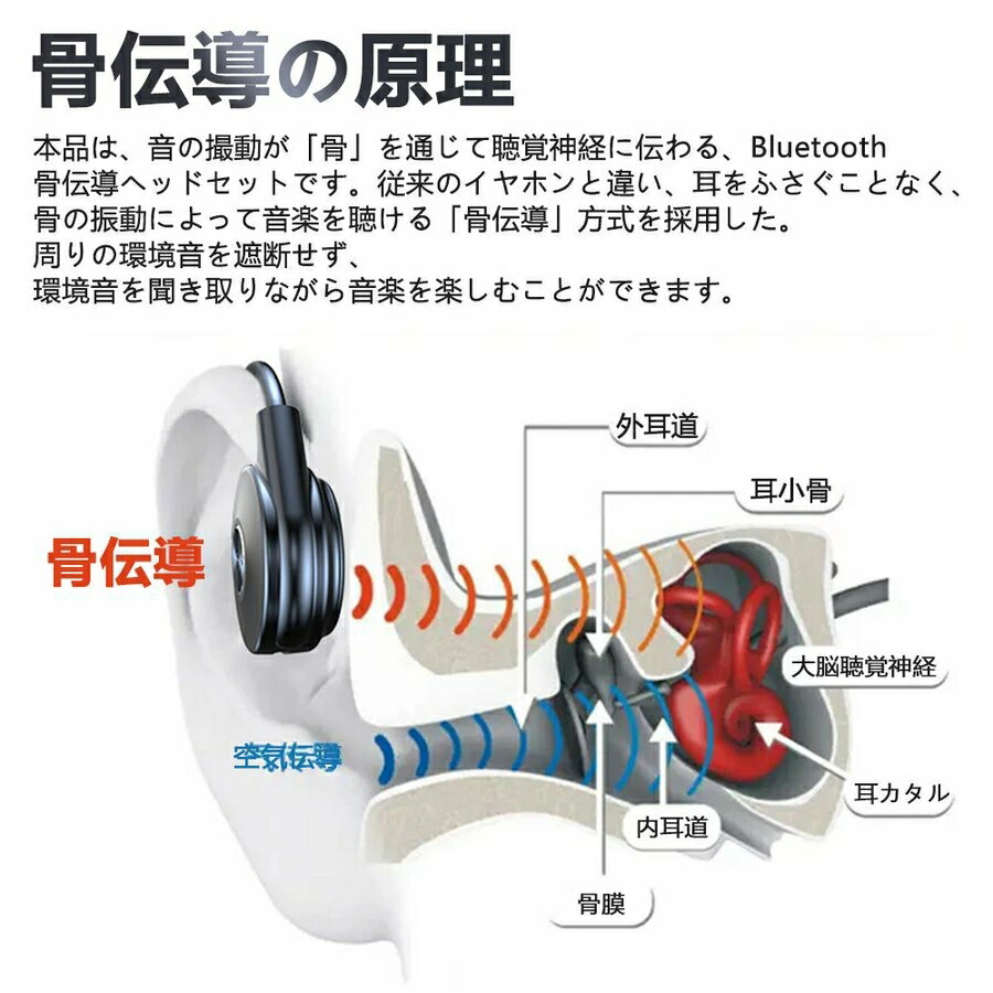 ワイヤレスイヤホン 骨伝導 ヘッドホン