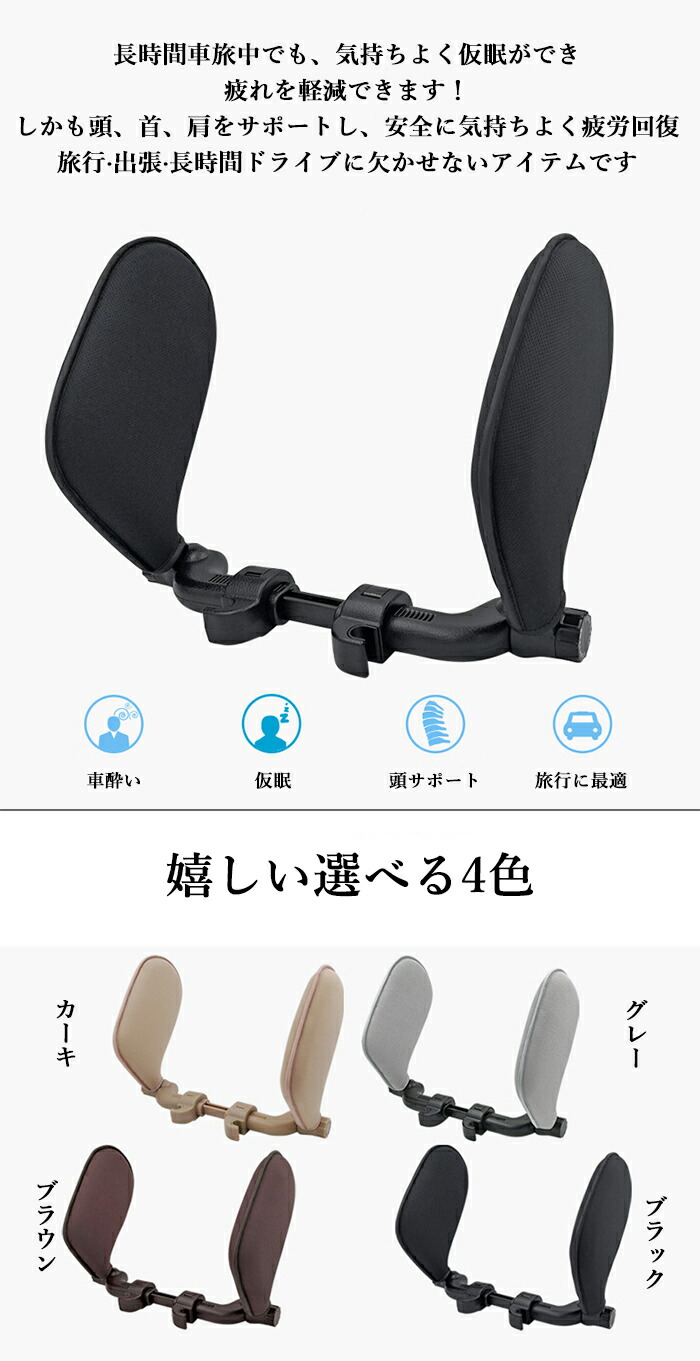 ネックパッド ネックピロー 車 ヘッド カーキ グレー ブラウン ブラック