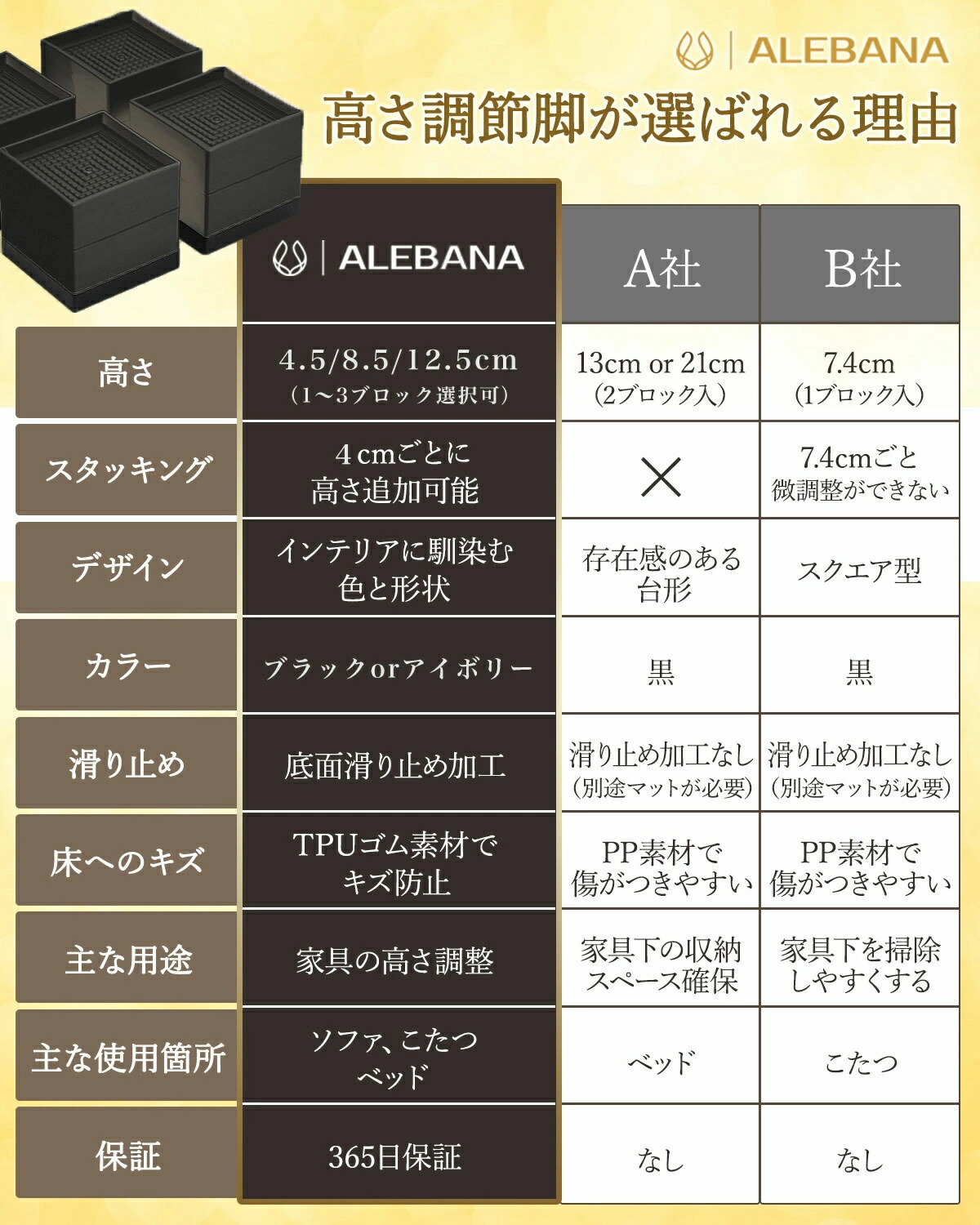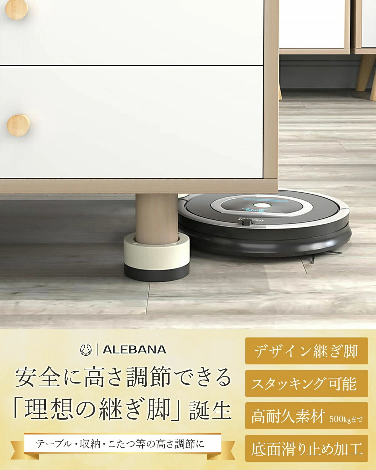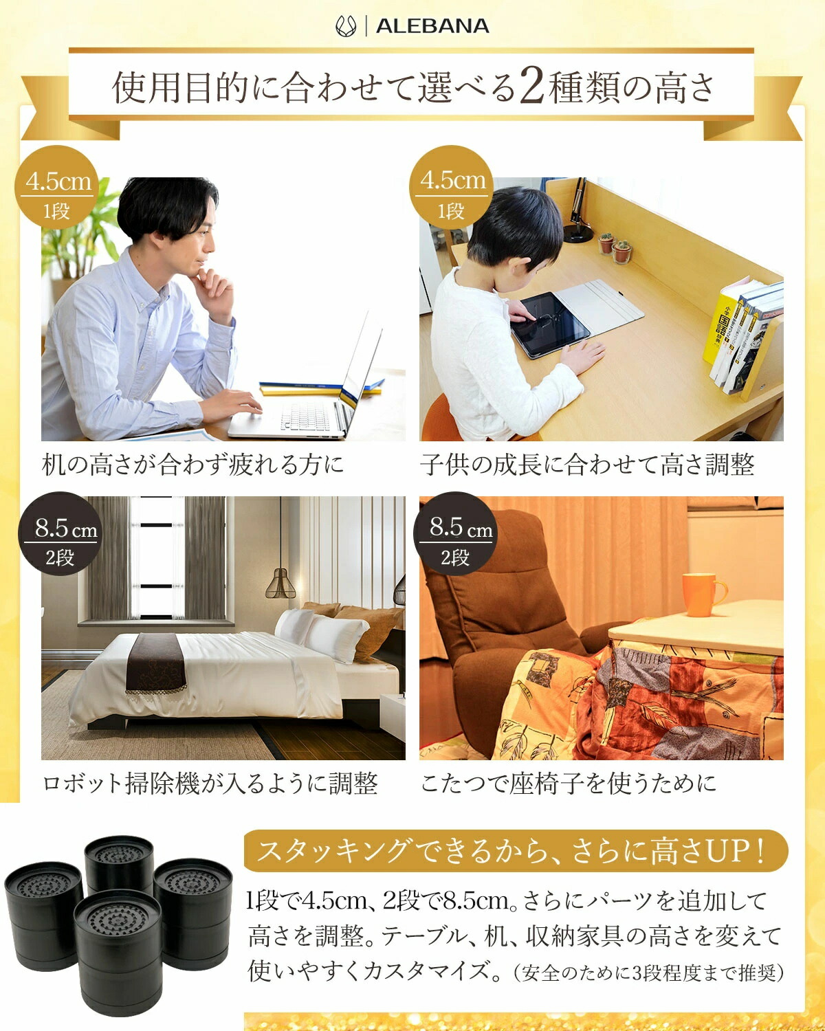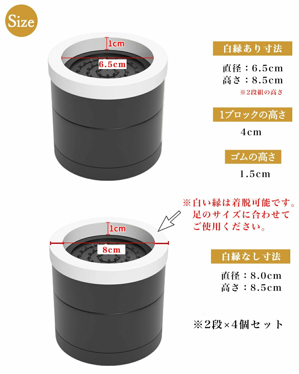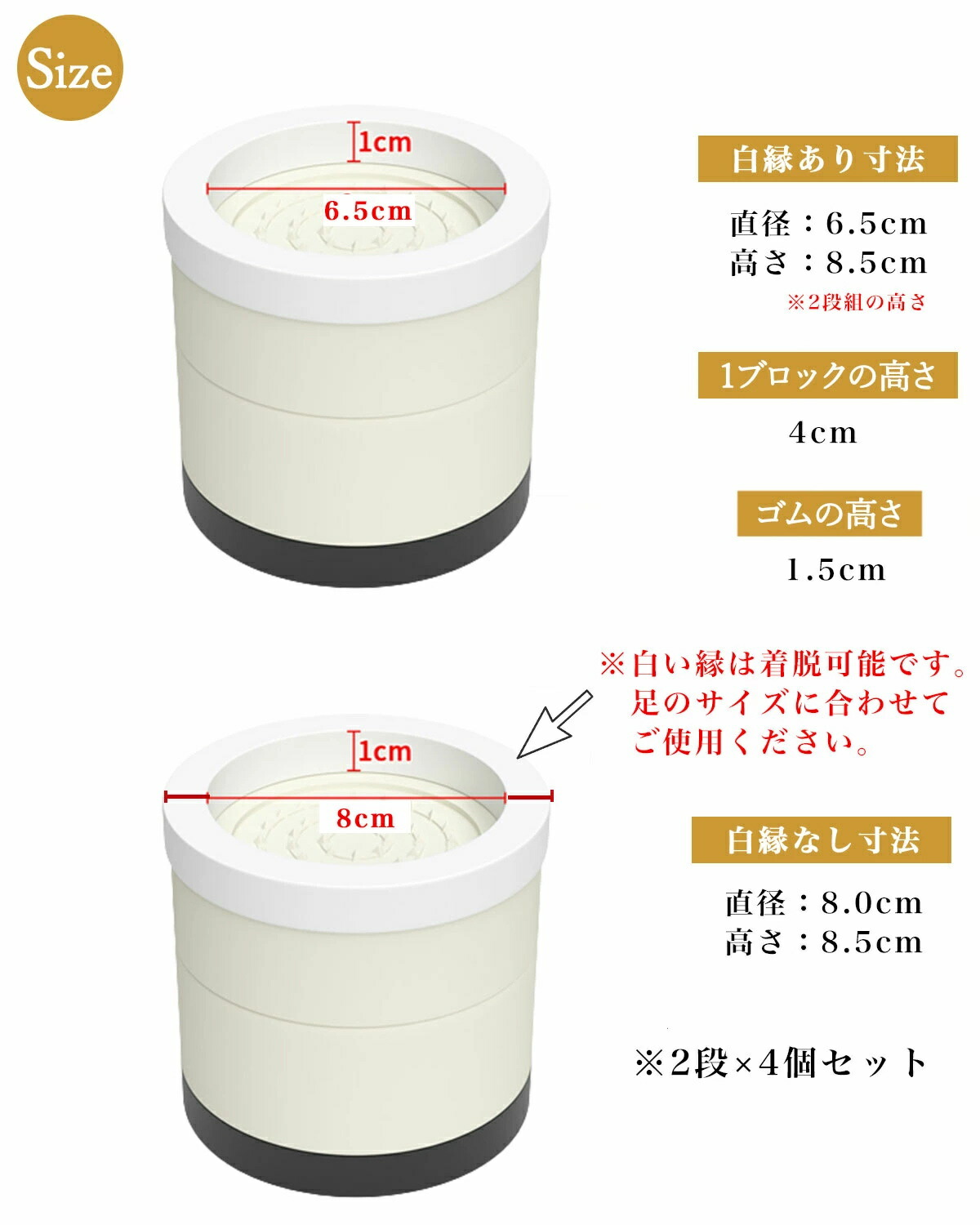 継ぎ脚 丸型 机 高さ調整 ベッド 脚 高さ4.5cm(1段) 高さ8.5cm(2段) 高さ12.5cm(3段) ブラック ベージュ ブラウン グレー