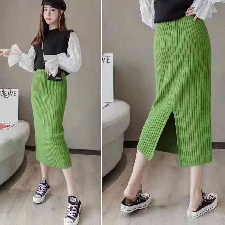ニットスカート レディース ニット ス ボトムス スカート 通販 ブラック グレー カーキ パープル レッドカレー イエロー グリーン S M L XL 2XL 3XL