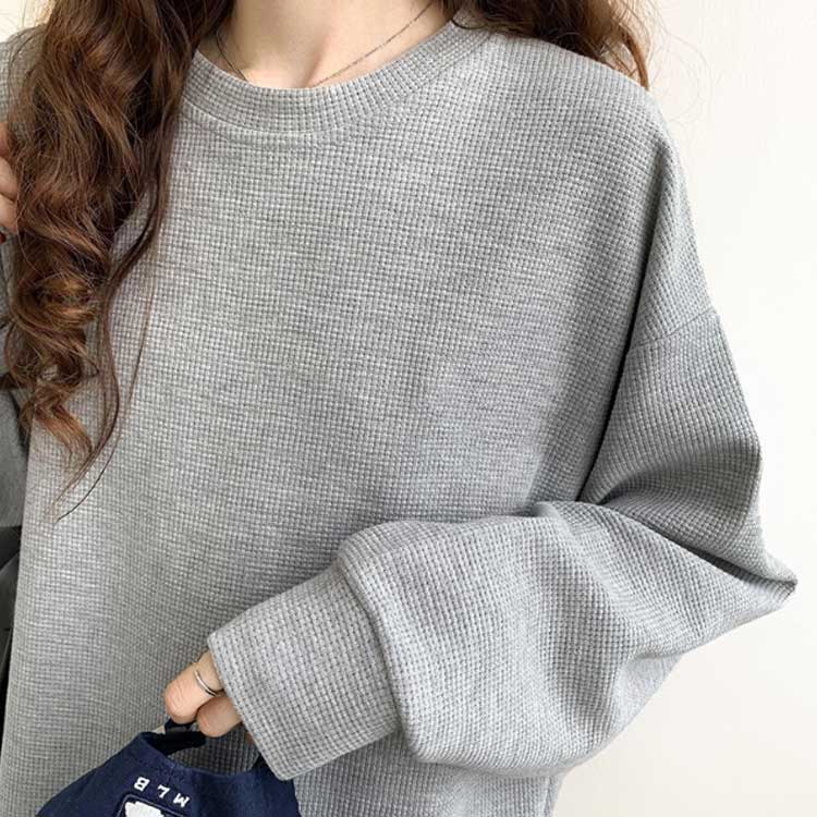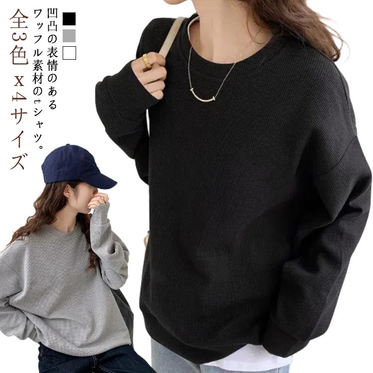 ワッフル Tシャツ レディース 長袖 レディースファッション 通販 ブラック グレー ホワイト M L XL 2XL