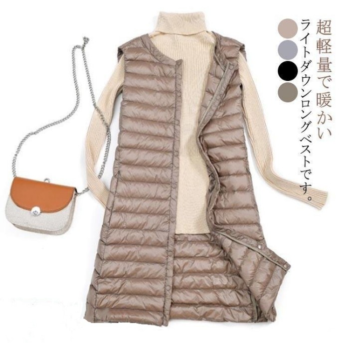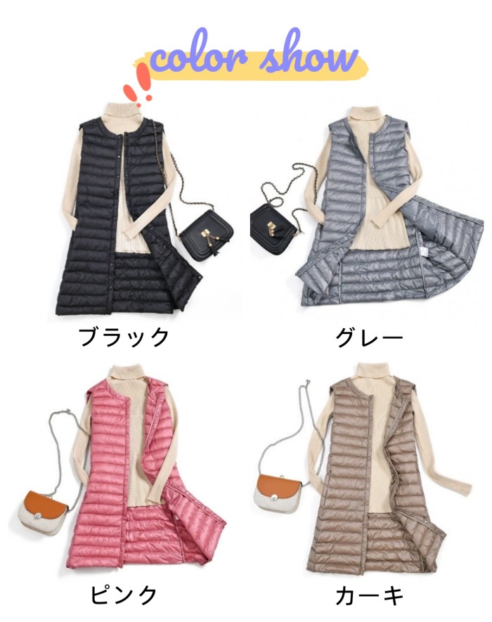 ダウンベスト レディース ロング丈 ジ トップス ベスト 早い者勝ち ブラック グレー カーキ ピンク M L XL 2XL 3XL