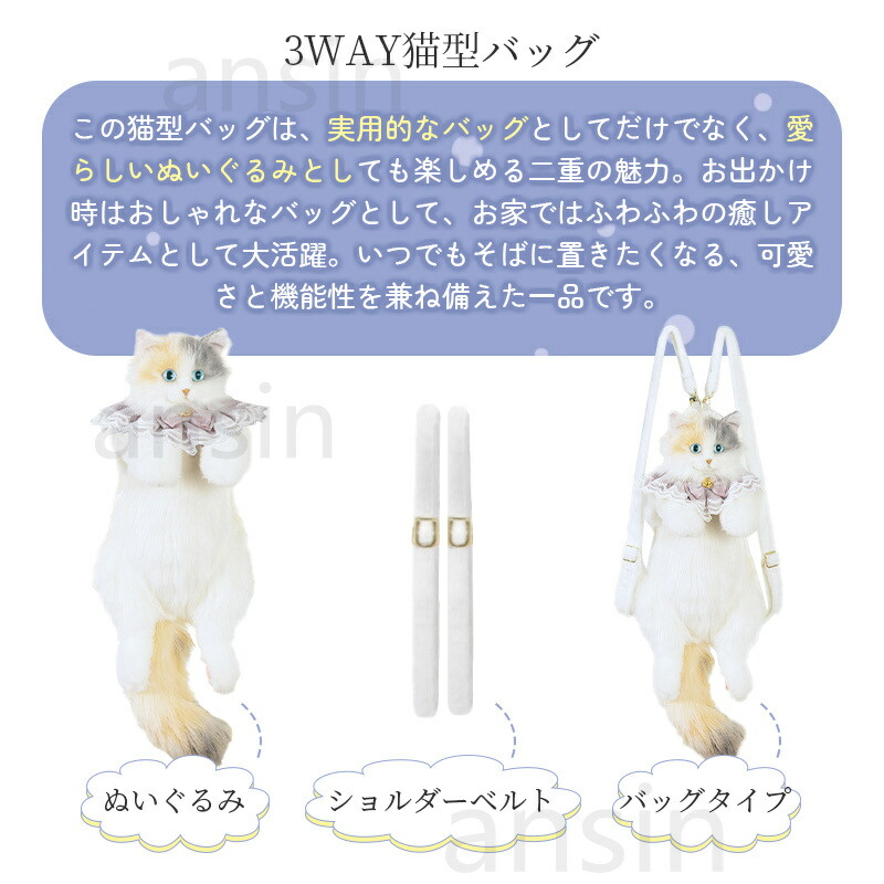 猫型バッグ リアル 猫 ぬいぐるみ シ バッグ 小物 ブランド雑貨 新登場! ラグドール 三毛猫 キジ三毛猫 黒白猫 レース&ベル にんじんモチーフ ピンク ブルー ブルーチェック