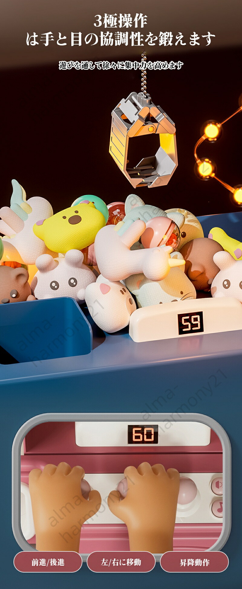 クレーンゲーム 本体 UFOキャッチャー 家庭用 知育玩具 音量調整可 音楽切替 USB 電池式 カプセル 景品付 ユーフォーキャッチャー 親子ゲーム お誕生日 プレゼント 壊れにくい パーティー