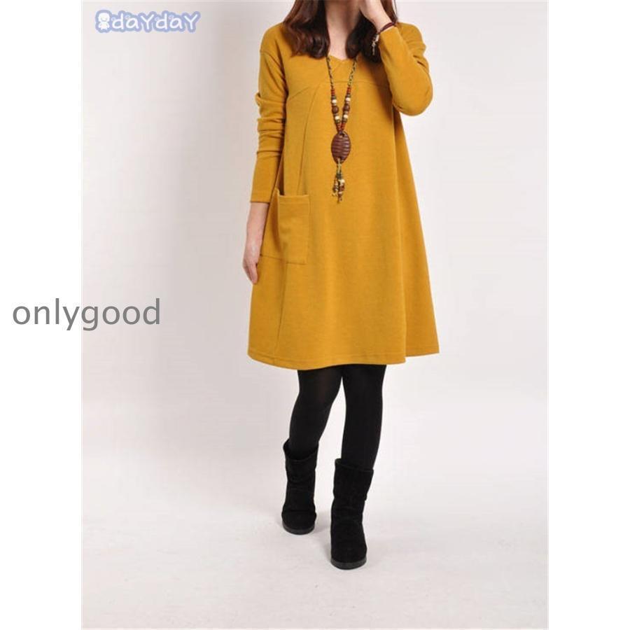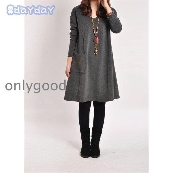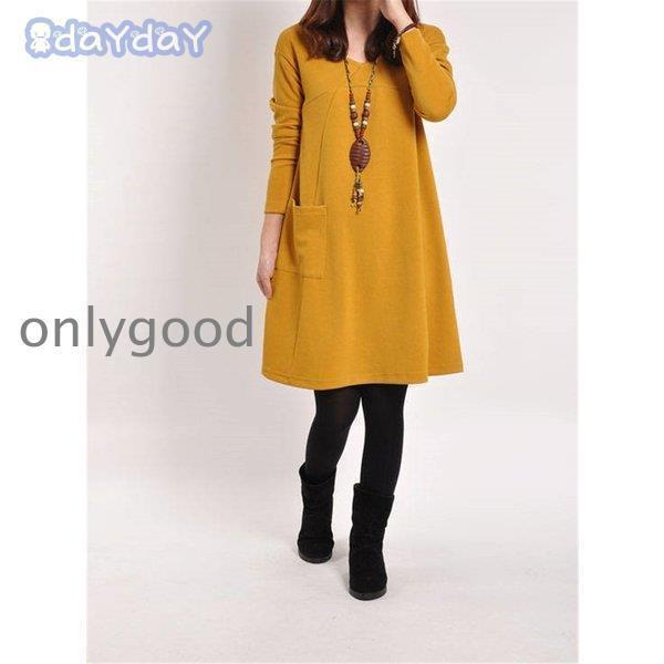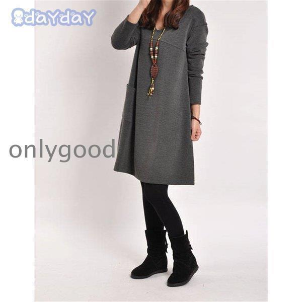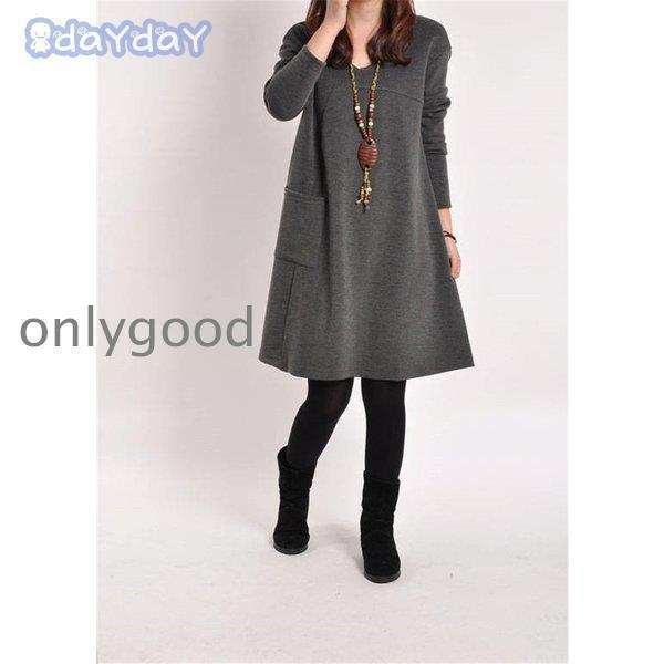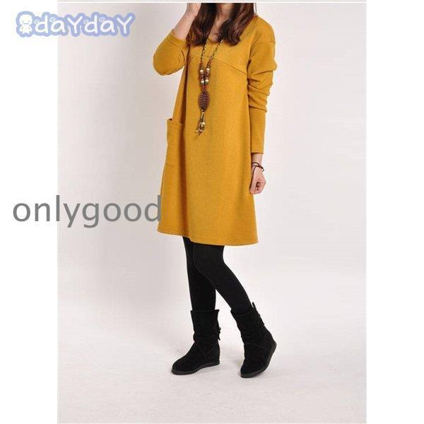 ワンピース レディース 膝丈 チュニッ ワンピース 超目玉商品 黄色 グレー 緑 M L XL 2XL