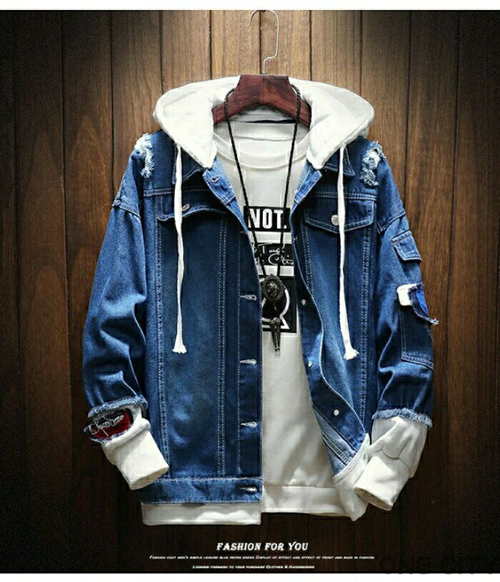 S-3XL デニムジャケットメンズ 春 秋アウターダメージ加工 ウィンテージ感 オーバーサイズ メンズ gジャンデニムパーカーメンズ 重ね風 フード付き アウター ストリート コート 原 ヒップホップ