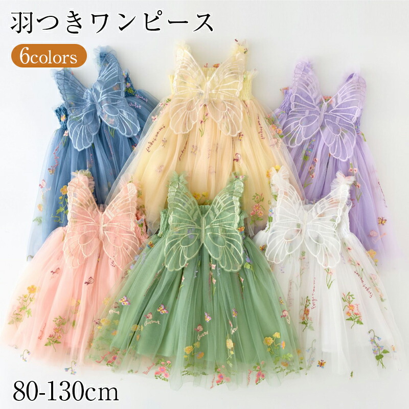 ベビー ワンピース 夏 チュールワンピ キッズ ワンピース 豊富な品揃え イエロー ホワイト パープル ピンク ブルー グリーン 80CM 90CM 100CM 110CM 120CM 130CM