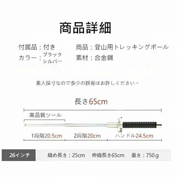 ストック 杖 伸縮 登山用 折りたたみ スポーツ アウトドア 特集 ブラック シルバー 26インチ67cm780g 32インチ79cm870g 36インチ102cm1050g 21インチ53cm650g