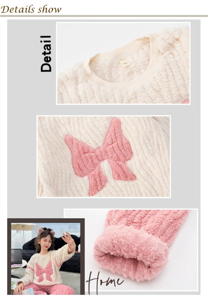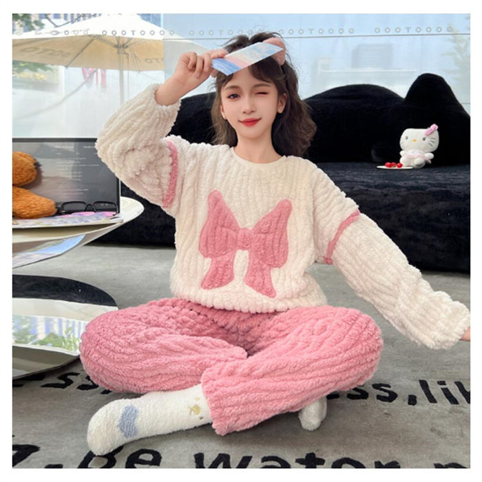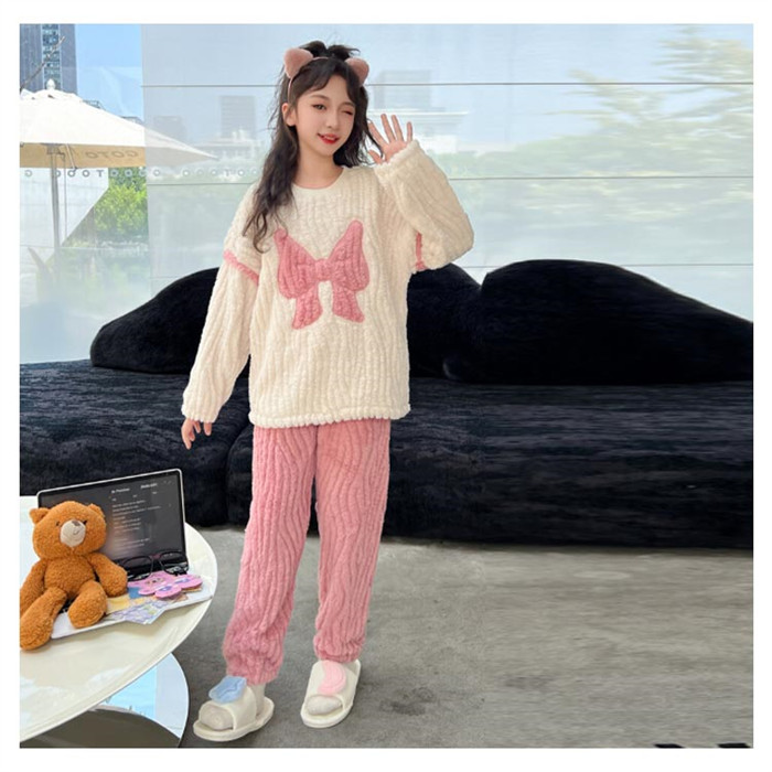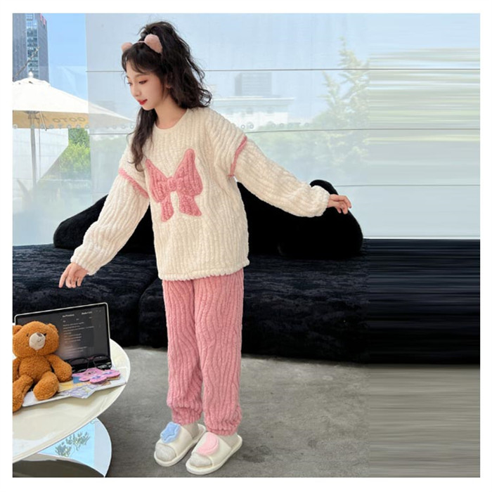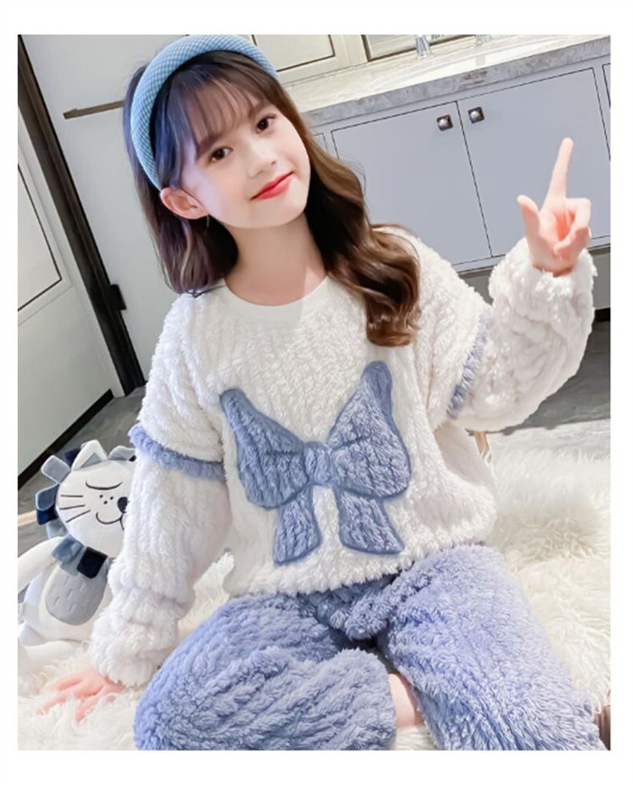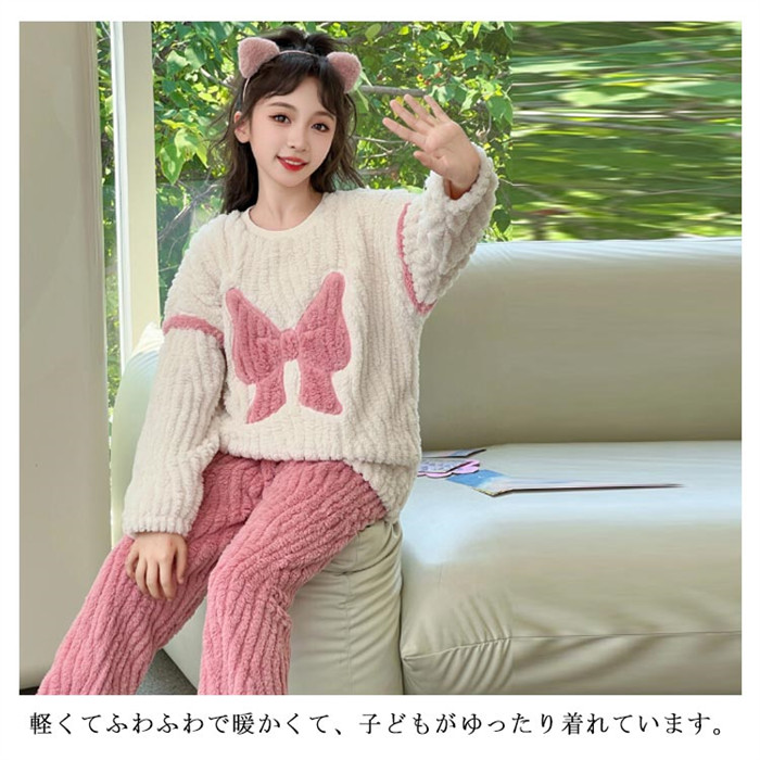 キッズ 上下セット パジャマ 女の子 男の子 長袖 冬 子供 トップス ボトムス パンツ トップス+パンツ 部屋着 もこもこ 110 120 130 140 150 160 寝巻き ウエストゴム 袖口 伸縮性 ストレッチ 厚手