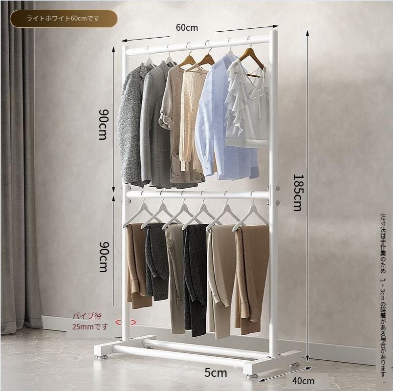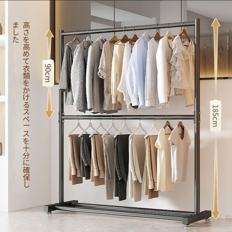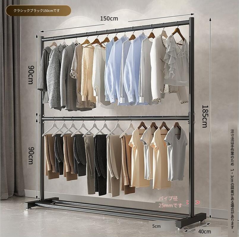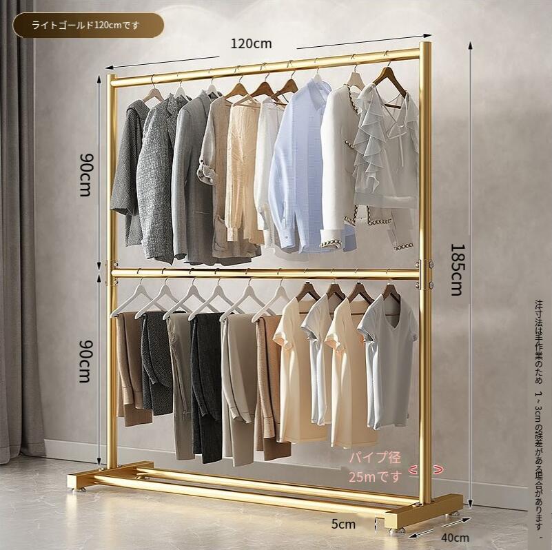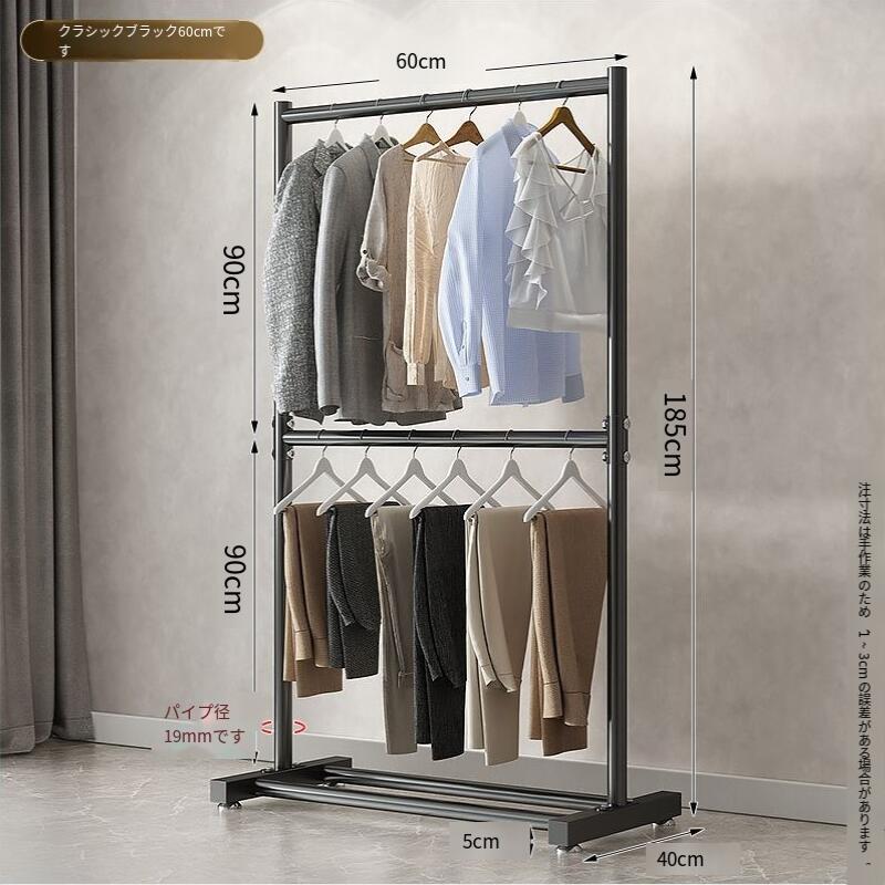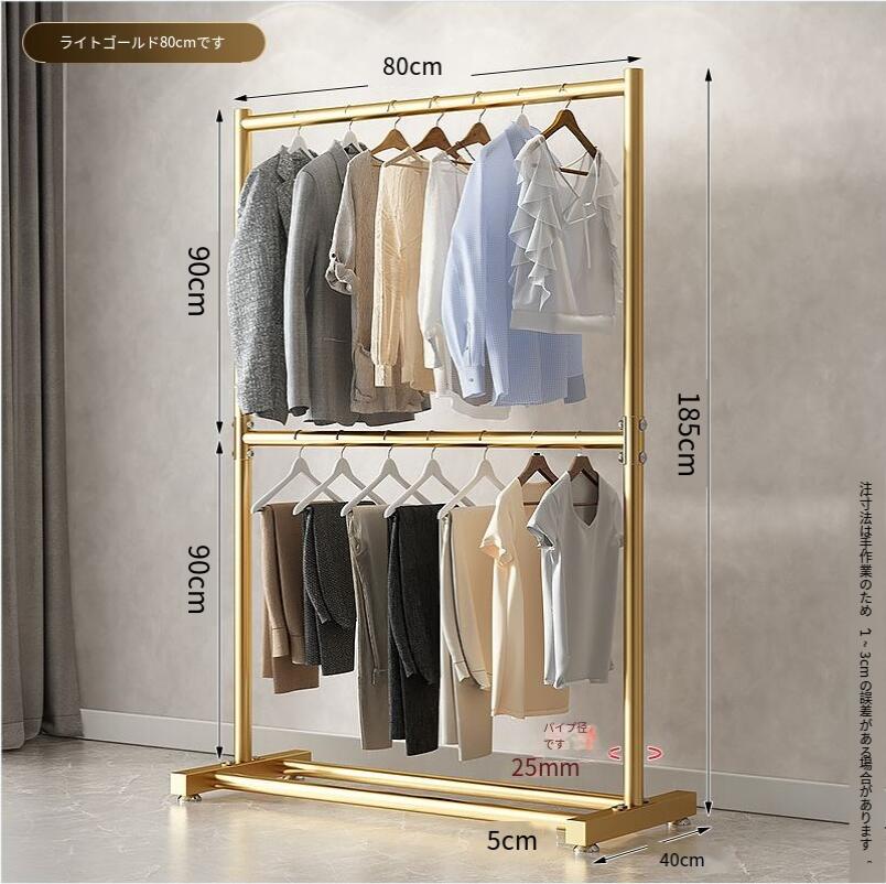 ハンガーラック スリム 頑丈 パイプハ ブラック ホワイト ゴールド 60cm二段 80cm二段 100cm二段 120cm二段 150cm二段