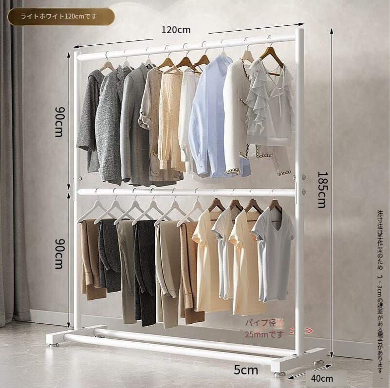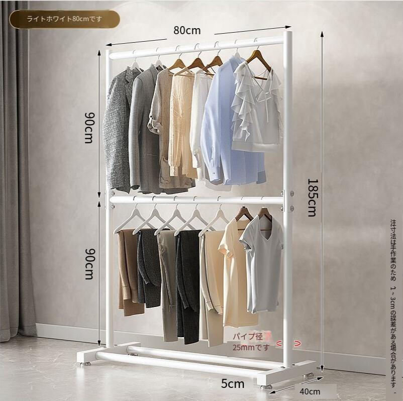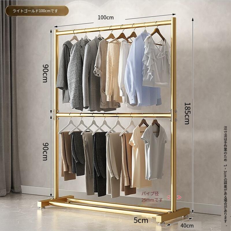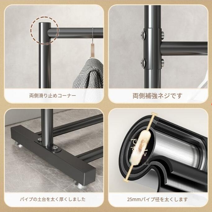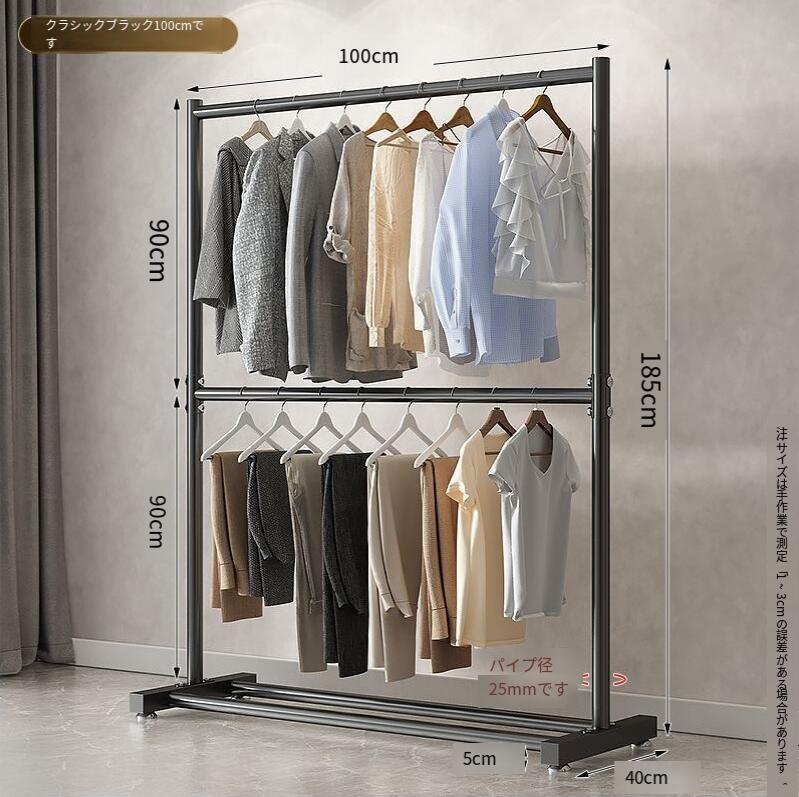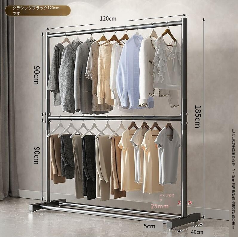 ハンガーラック スリム 頑丈 パイプハ ブラック ホワイト ゴールド 60cm二段 80cm二段 100cm二段 120cm二段 150cm二段