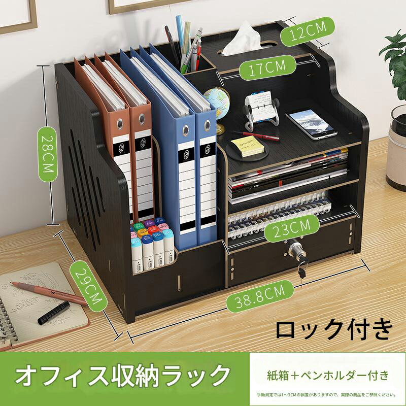 小物収納 木製 38.8*29*28c ホワイト チェリーウッド ブライトブラック ロック付き ロックなし