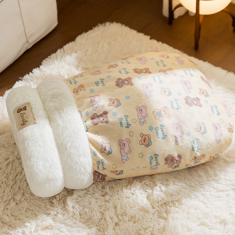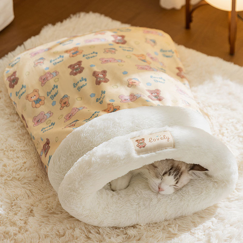 ペットベッド 冬用 ペット 半密閉型 猫用品 ベッド マット 寝具 ベッド 人気 イエロー ブラウン M(45*35cm-4KG以内) L(55*45cm-8KG以内)