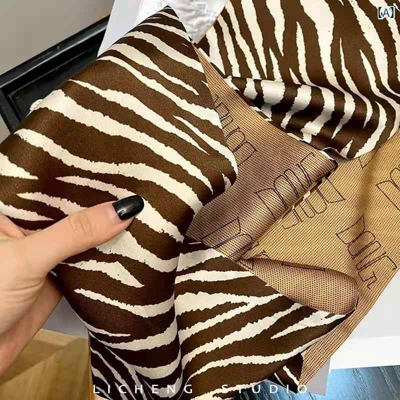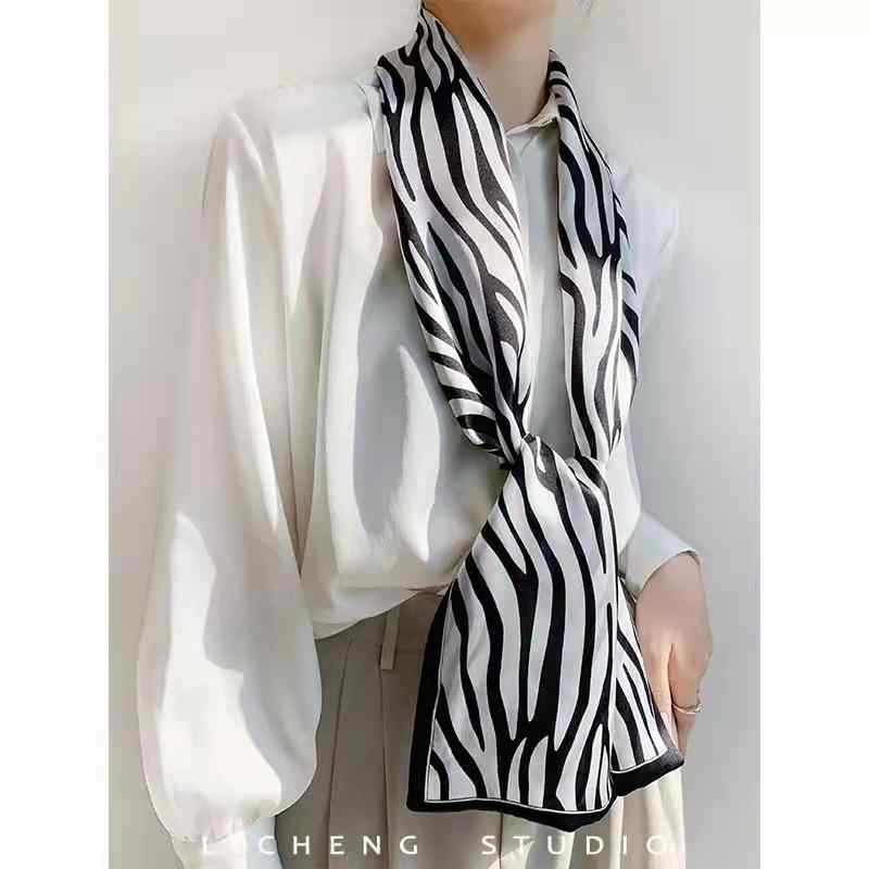スカーフ おしゃれ レディース ストール シルク ロング 装飾 ヘッドバンド ブラウン 白 ゼブラ柄 ベルト