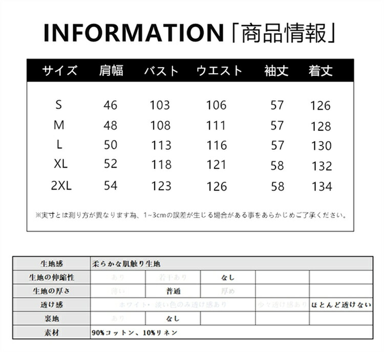 2XL 肩幅:54 バスト:123 ウエスト:126 袖丈:58 着丈:134