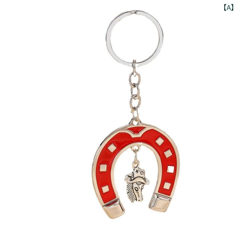 キーホルダー メンズ レディース ウエスタン 馬蹄 マグネット ペンダント 金属 アクセサリー レッド バッグ