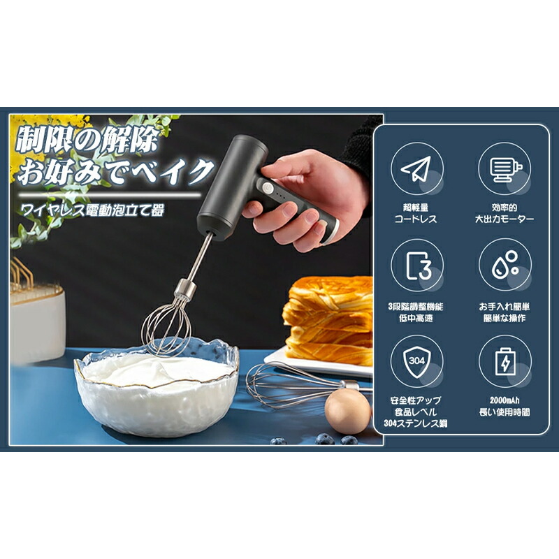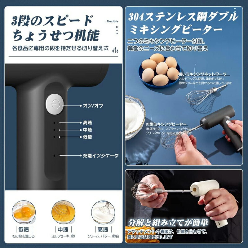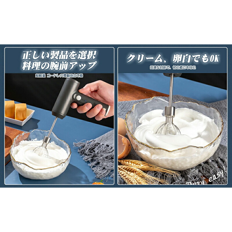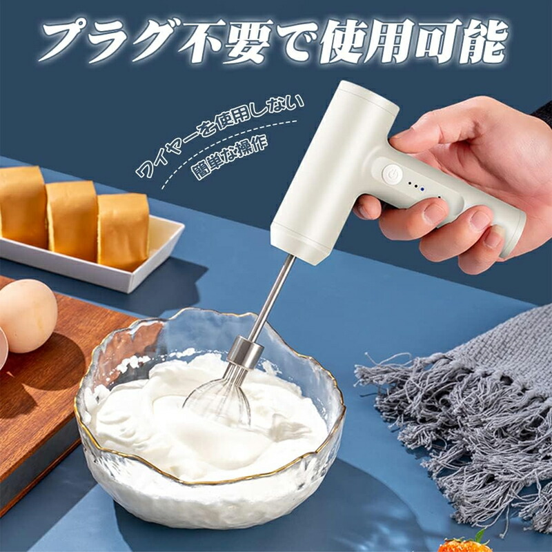 ハンドミキサー コードレス 泡立て器 ハンドブレンダー 小型泡立て器 充電式 USB充電式 軽量 超軽量 小型 電動 強力 電動泡立て器 ミキサー 家庭用 ホイッパー お菓子 ケーキ 離乳 生クリーム