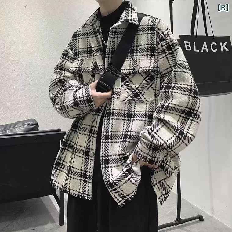 シャツジャケット メンズ おしゃれ かっこいい カジュアル アウター レジャー アウトドア 長袖 チェック柄 春秋 ファッション 千鳥格子 白 黒 紳士服