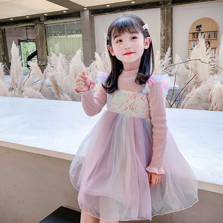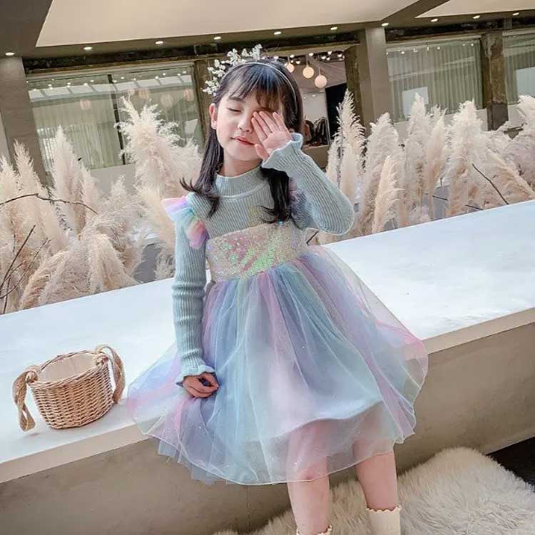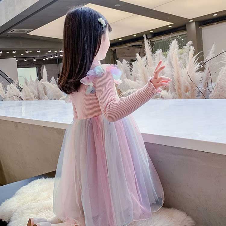 レインボーグラデーション 子供ドレス キッズ ワンピース 早い者勝ち 裏起毛無ブルー 裏起毛無ピンク 裏起毛付ブルー 裏起毛付ピンク 90 100 110 120 130 140