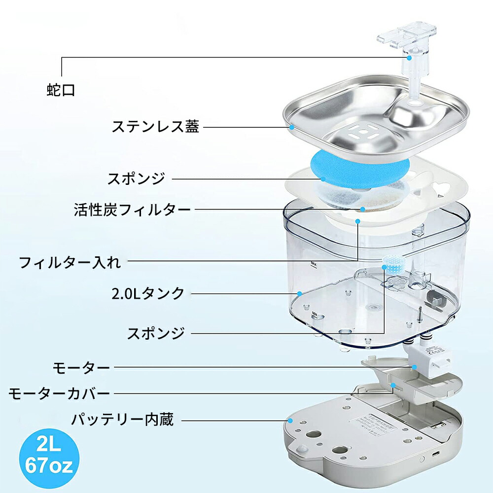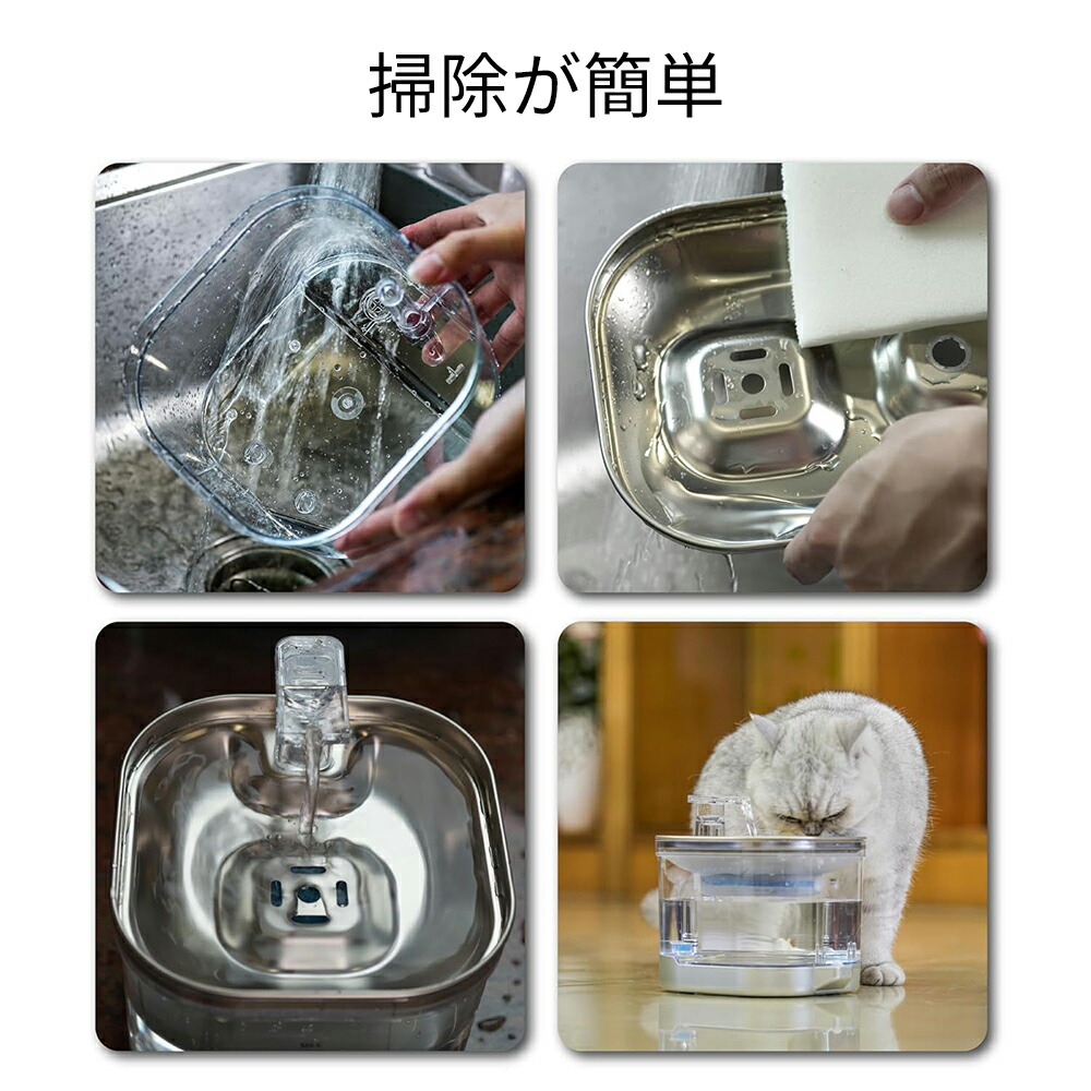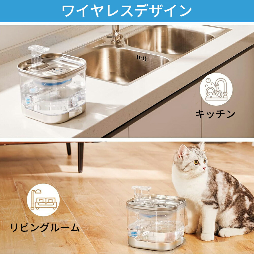 自動給水器 猫 犬 コードレス 水飲み器 ステンレス製 2L 洗いやすい 給水器 取付簡単 ペット 自動水やり器 超静音 大容量 20dB静音ペットキット ペット用 自動給 多頭飼いも対応