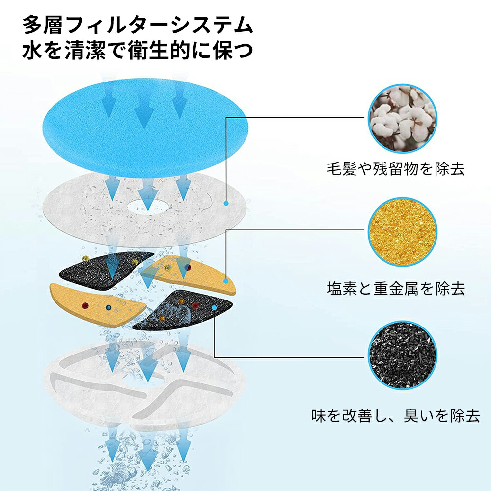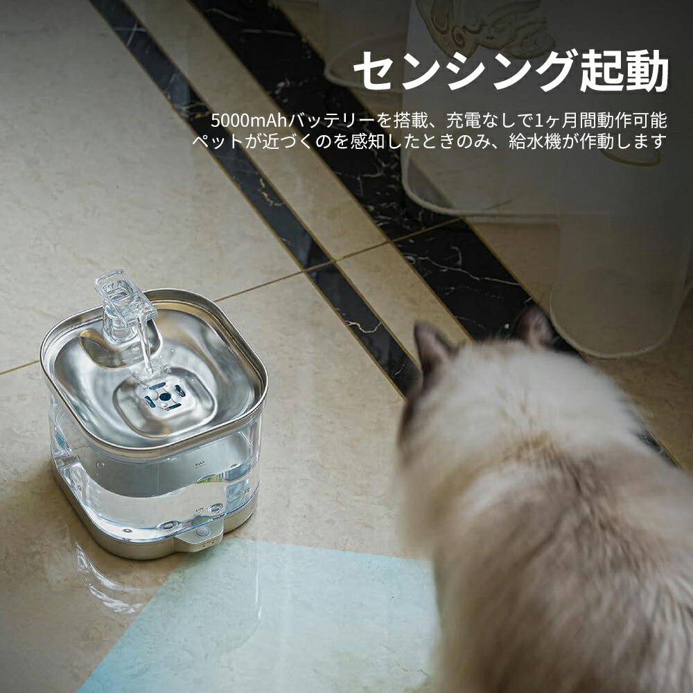 猫 給水器 コードレス 充電式 活性炭フィルター1枚付 スマートペット用循環式自動給水器 センサー 動作検知