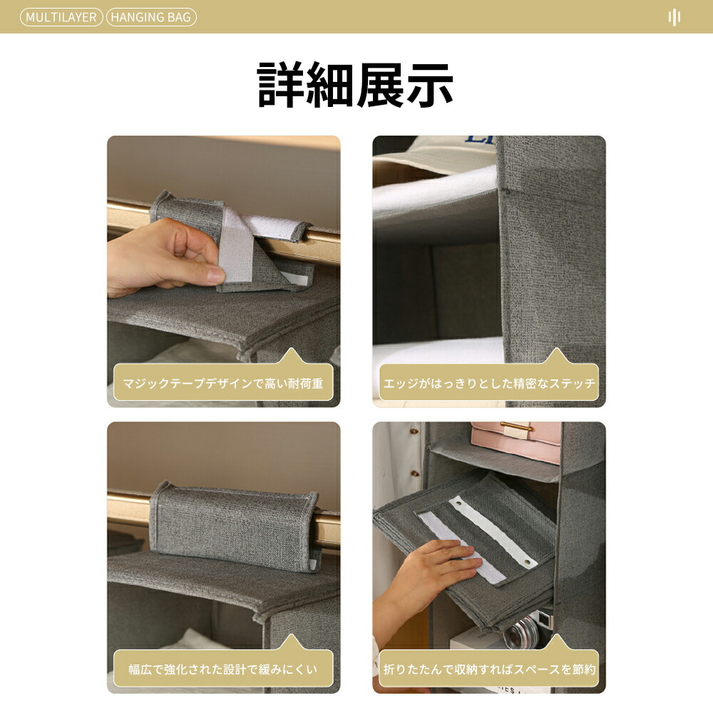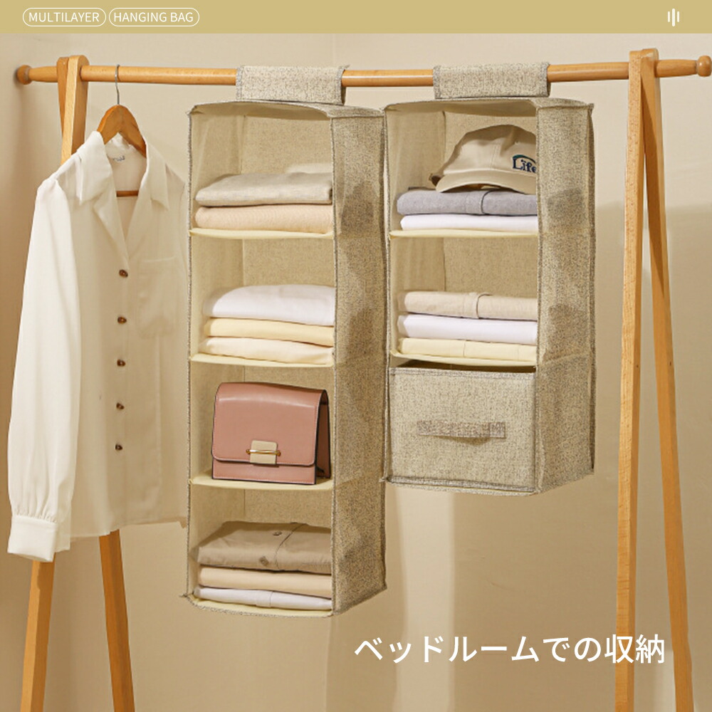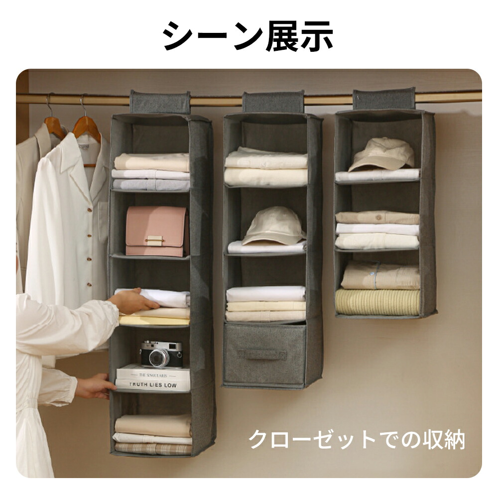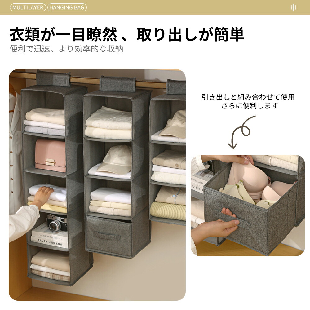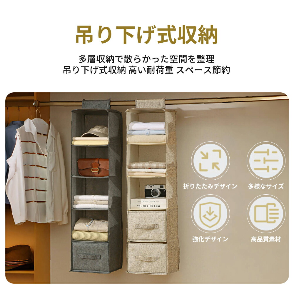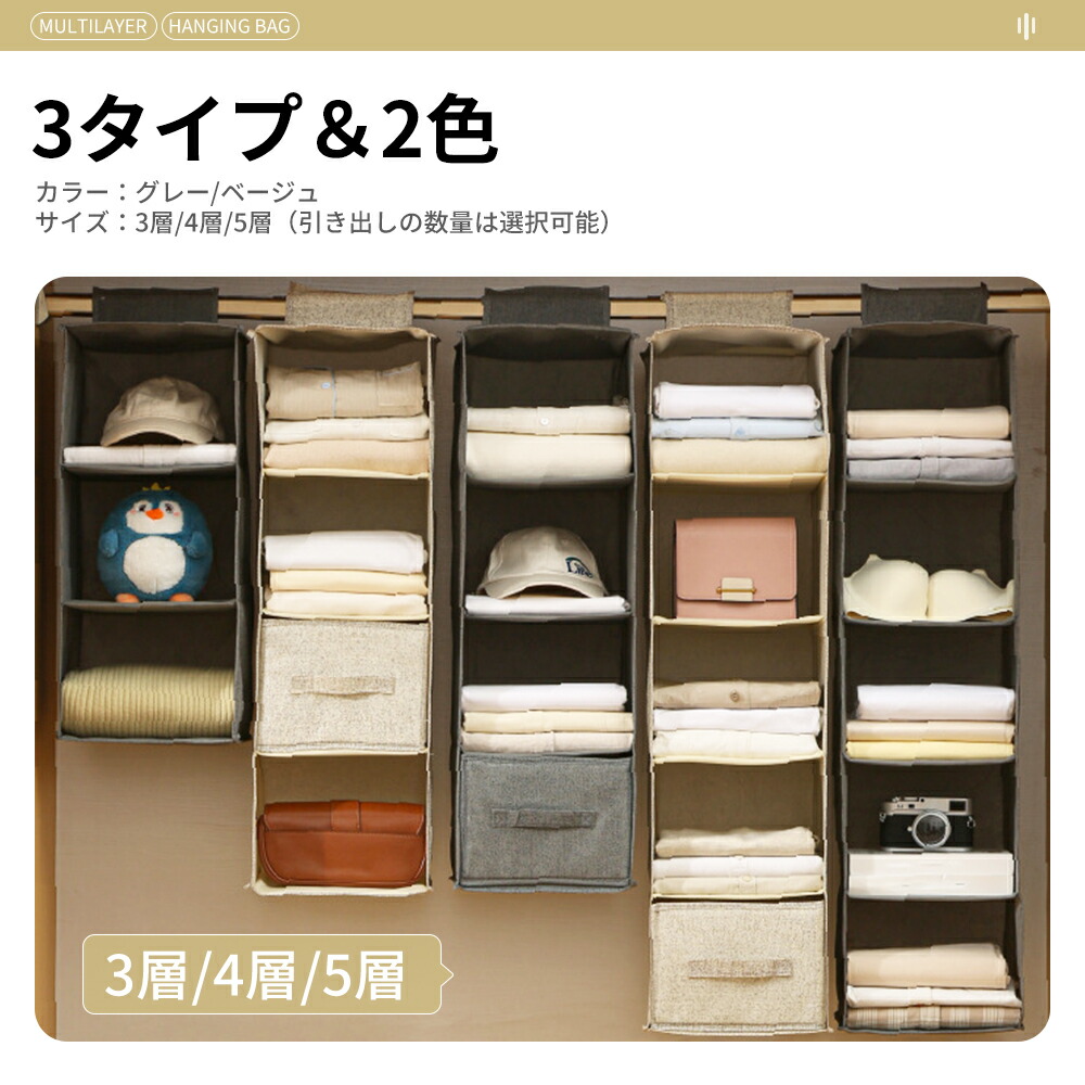 吊り下げ収納 クローゼット 吊り下げ ベージュ グレー 3段(引き出し無し) 4段(引き出し無し) 5段(引き出し無し)