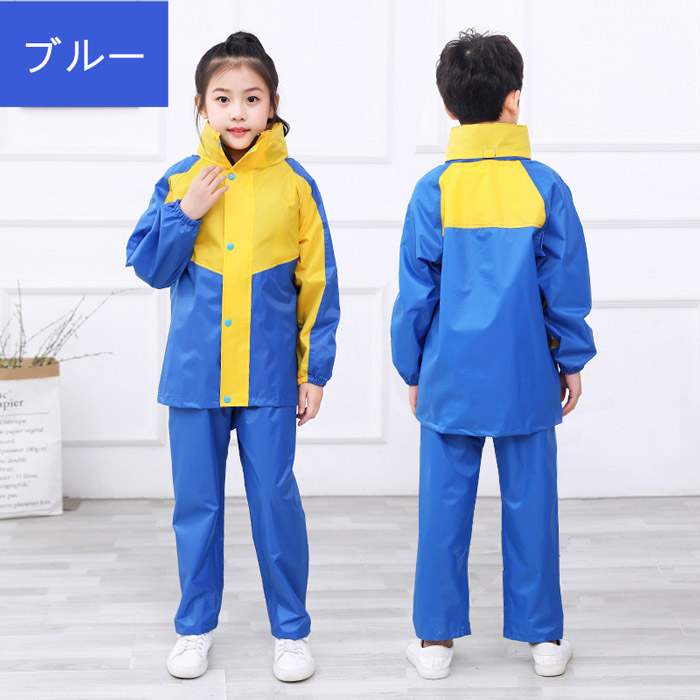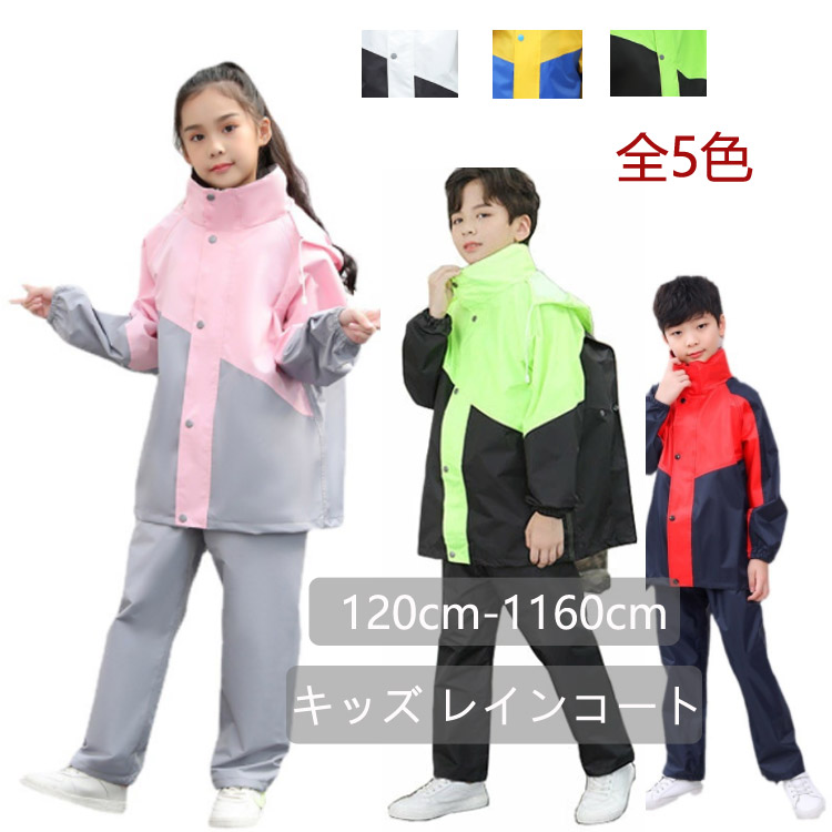 キッズ レインコート2点セット 子供 ブルー ピンク グリーン ホワイト レッド XL(身長約115-130cm) 2XL(身長約130-140cm) 3XL(身長約140-150cm) 4XL(身長約150-165cm) 5XL(身長約160-175cm)