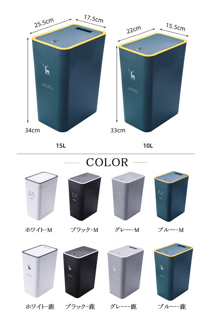 ゴミ箱 ごみ箱 10L 15L おしゃ ホワイト-M ホワイト-鹿 ブラック-M ブラック-鹿 ブルー-M ブルー-鹿 グレー-M グレー-鹿 10L 15L