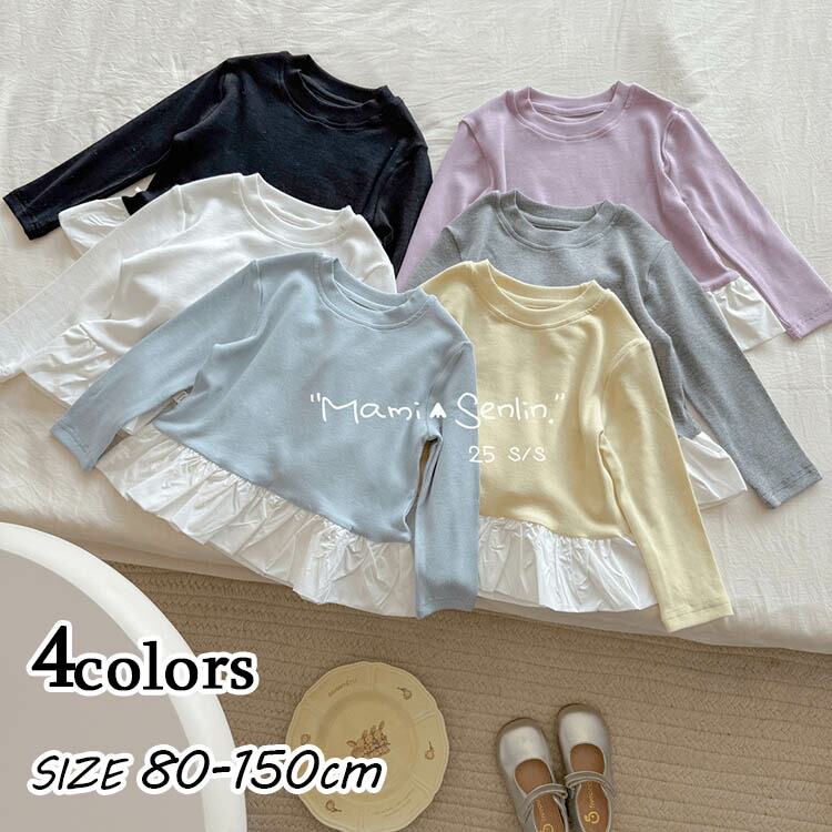 tシャツ 女の子 秋 冬 キッズ トッ キッズ ベビー マタニティ 続々登場 イエロー ブルー グレー ホワイト 80cm 90cm 100cm 110cm 120cm 130cm 140cm 150cm