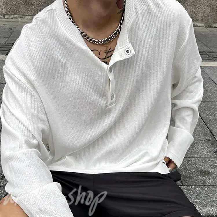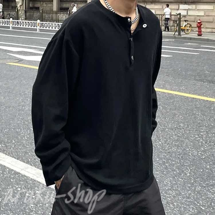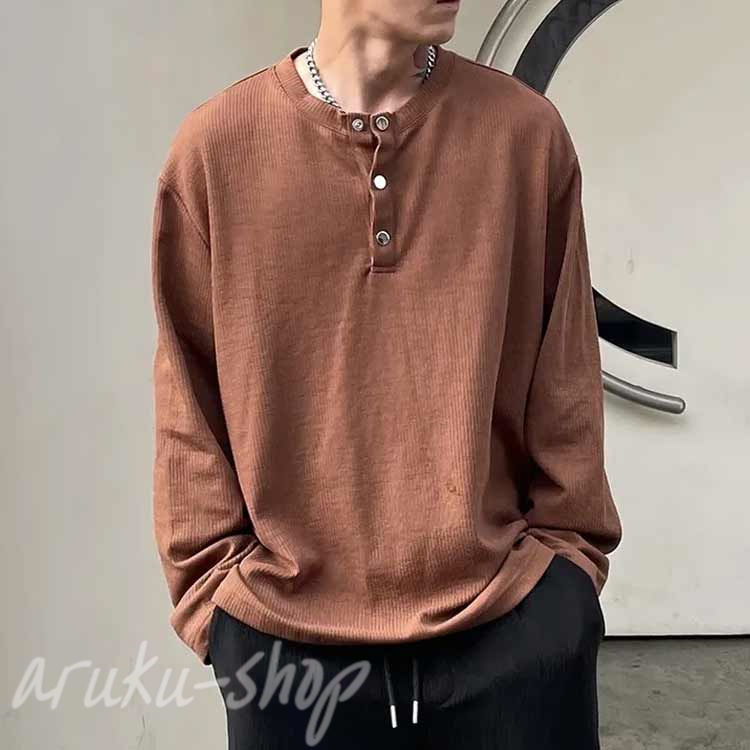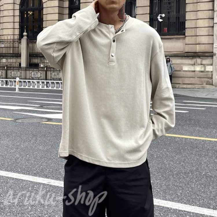 ヘンリーネックtシャツ メンズ 長袖t メンズファッション 人気 ブラック ホワイト アプリコット キャラメル グレー L XL 2XL 3XL 4XL