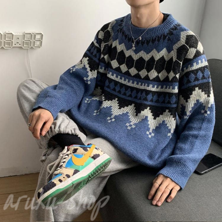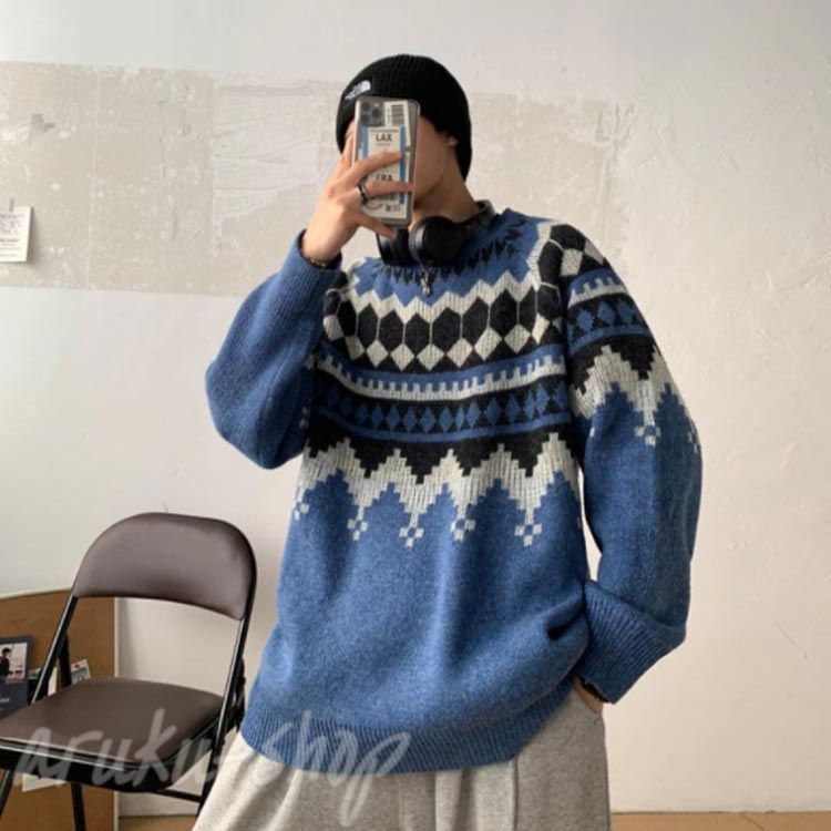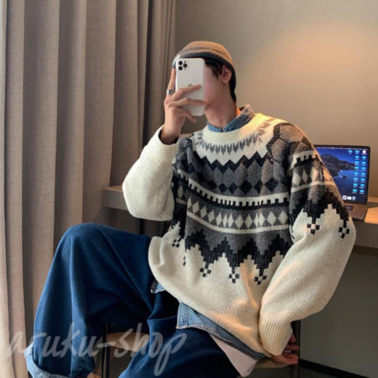 ノルディック柄 メンズ ニット 男 レ トップス ニット セーター 豊富 グレー ブルー ブラック M L XL 2XL 3XL