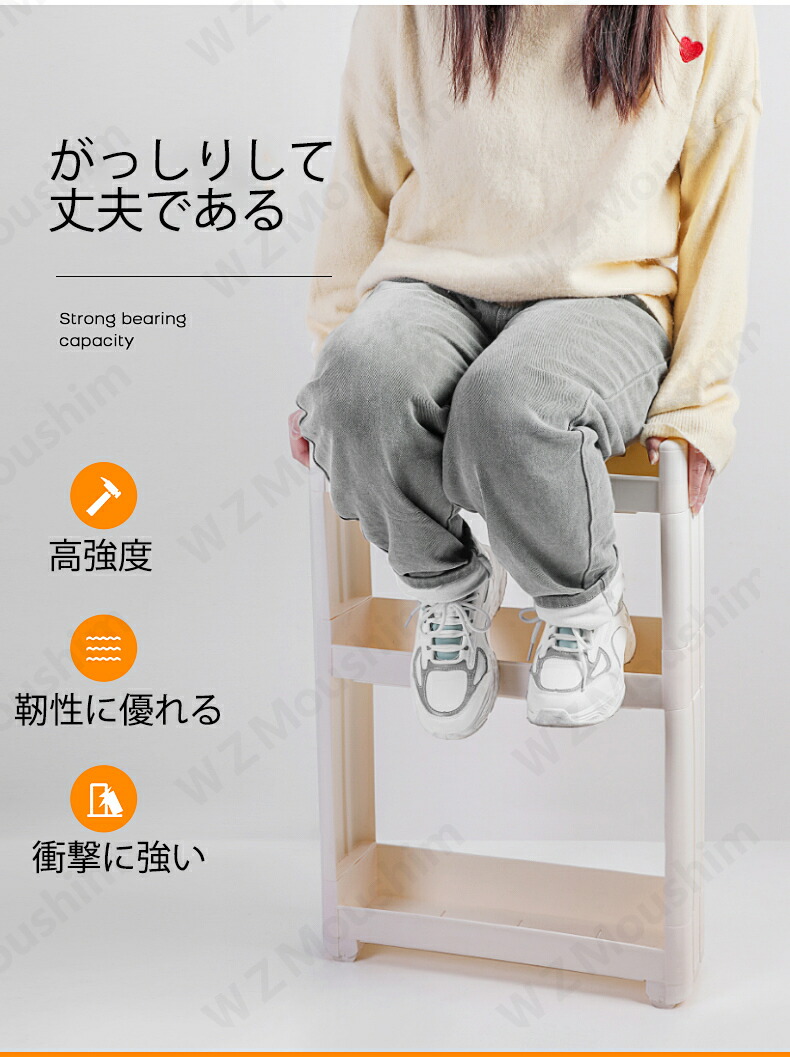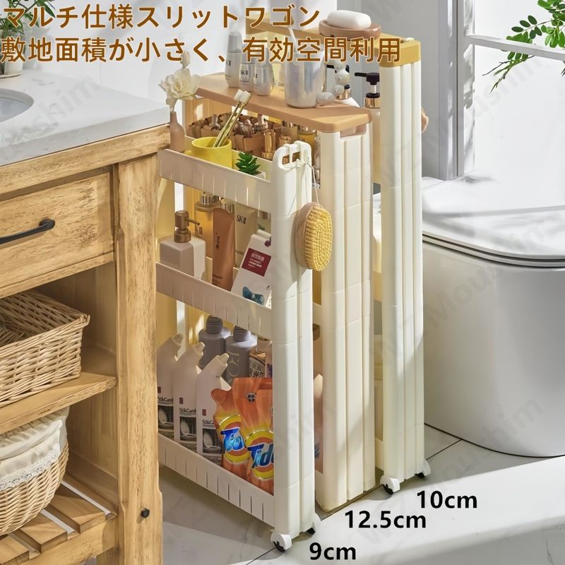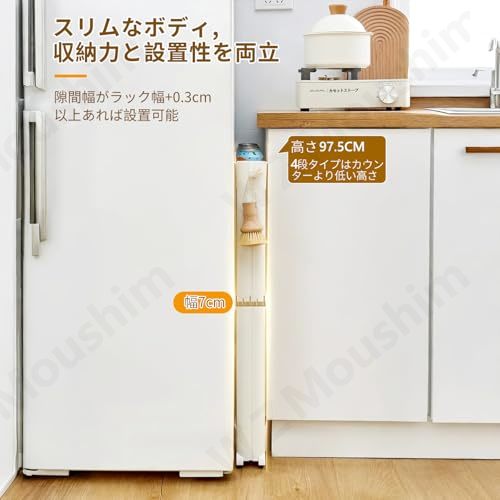 【7cm超薄型設計で空間を有効活用】冷蔵庫横、洗濯機横、洗面台下などのデッドスペースに最適。幅わずか7cmの超薄型設計で、狭いキッチンや浴室もすっきり収納。浴室、寝室、リビング、子供部屋、キッチン、書店、美容室など様々な場所で大活躍。抜群の収納力を実現します。