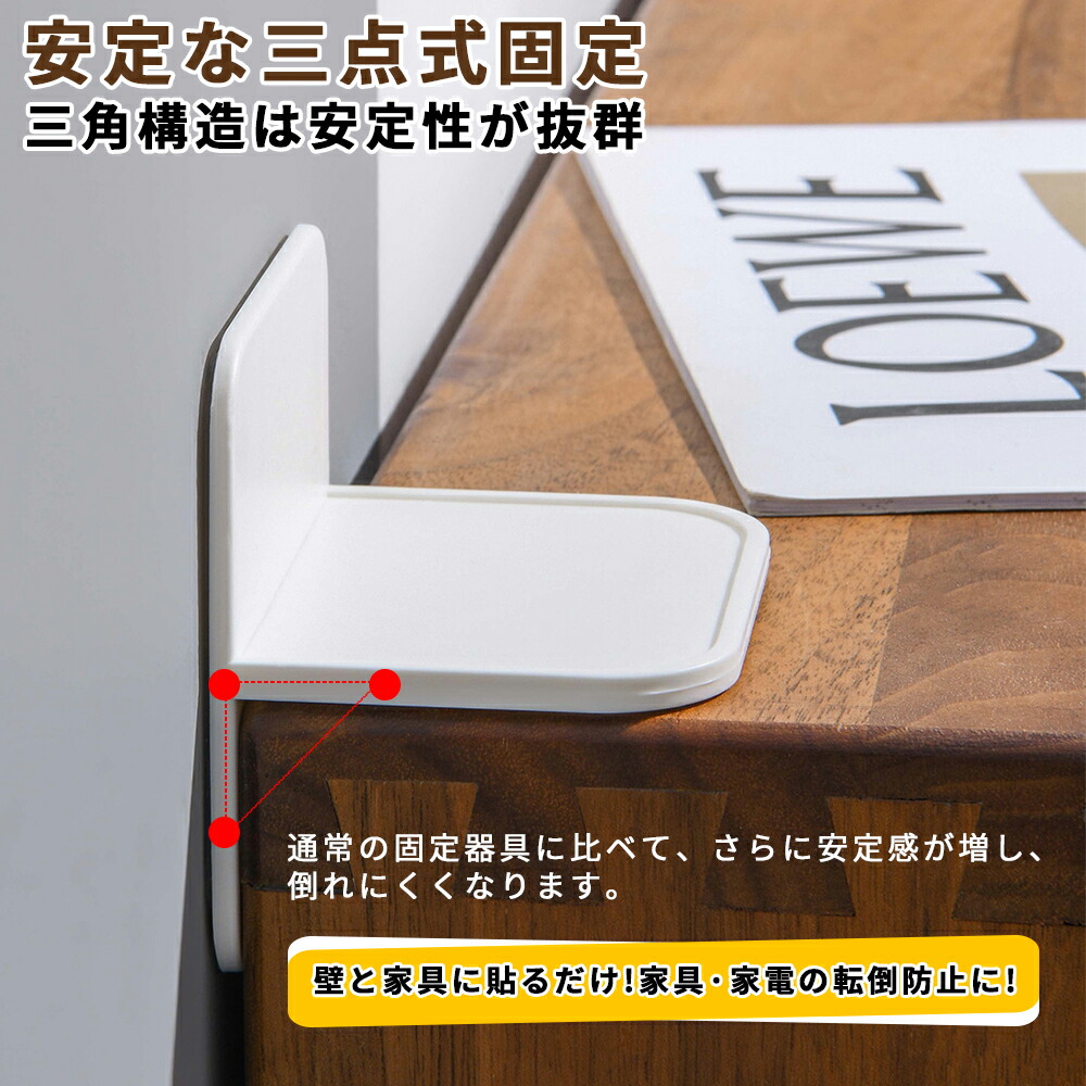 【取り付け簡単】:穴あけ不要で、誰でも簡単に取り付けられます。耐震ストッパーの一方を壁などの固定された建物の表面に貼り、もう一方を固定したい家具に貼り付けることで、簡単に操作が完了します。低い家具にも対応可能です。