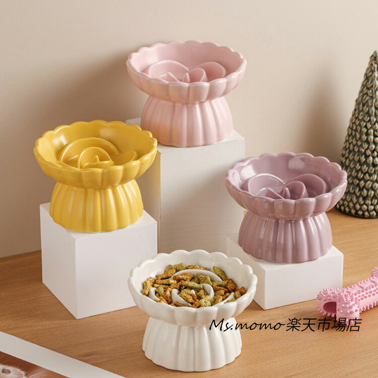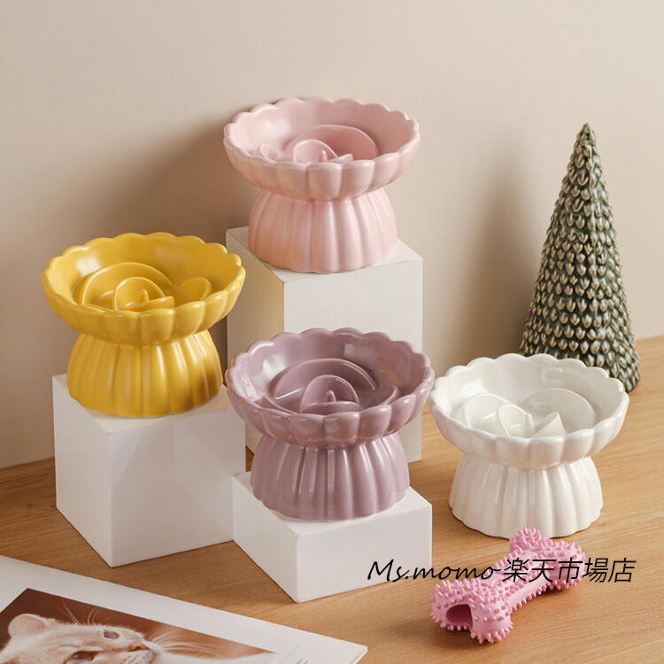 猫 食器 犬 フードボウル 早食い防止 ホワイト ピンク パープル イエロー