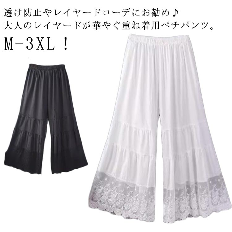 ペチパンツ レース レディース 森ガー インナー 下着 ナイトウエア 通販 ホワイト ブラック M L XL 2XL 3XL
