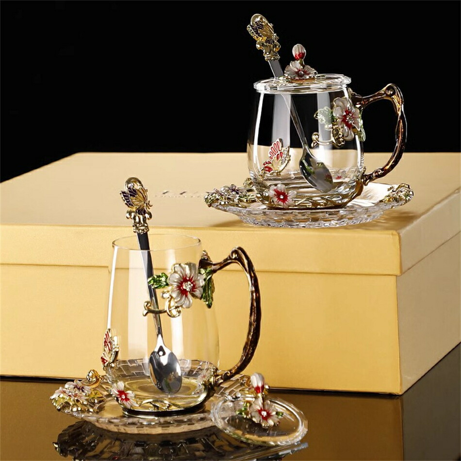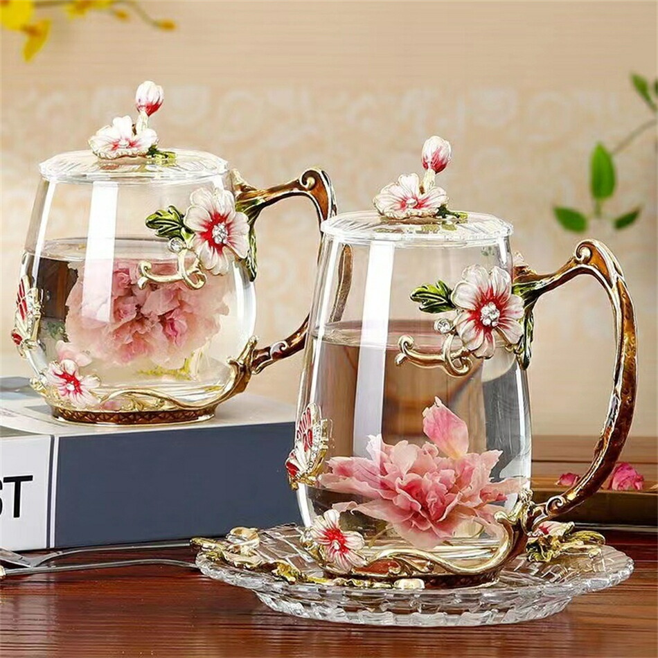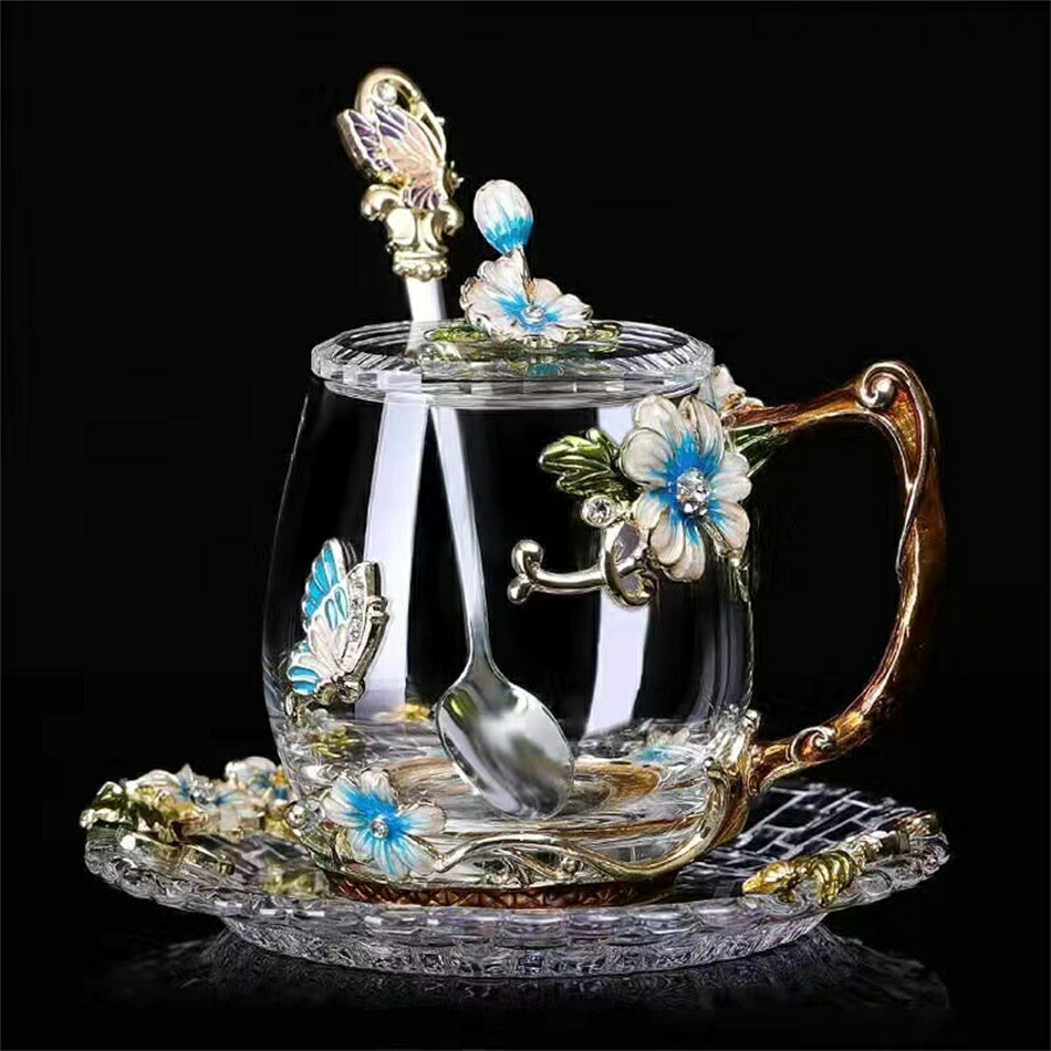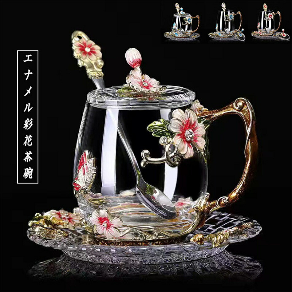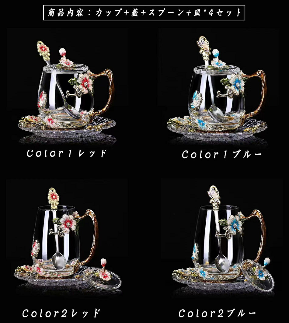 耐熱 ガラスティーカップ&ソーサー&蓋 color1レッド color1ブルー color2レッド color2ブルー