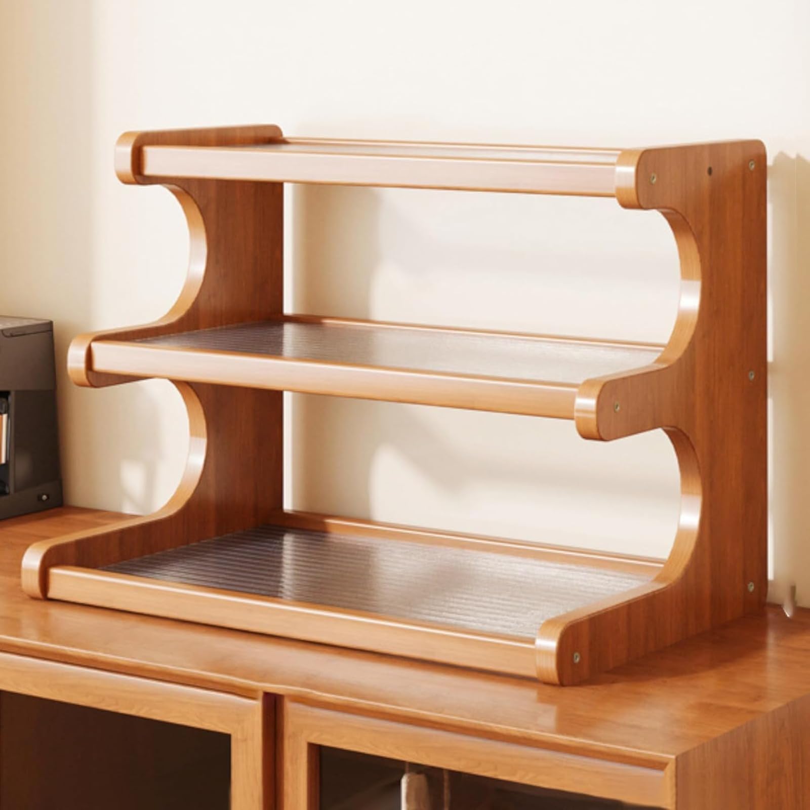 卓上ラック 卓上収納 2段 3段 デスク上置棚 天然の竹材 机の上に置く棚 アクリル板 防汚性に優れ 棚 デスクシェルフ オープンデザイン 台形構造 小さい棚 スパイスラック 30*15*18 飾り棚