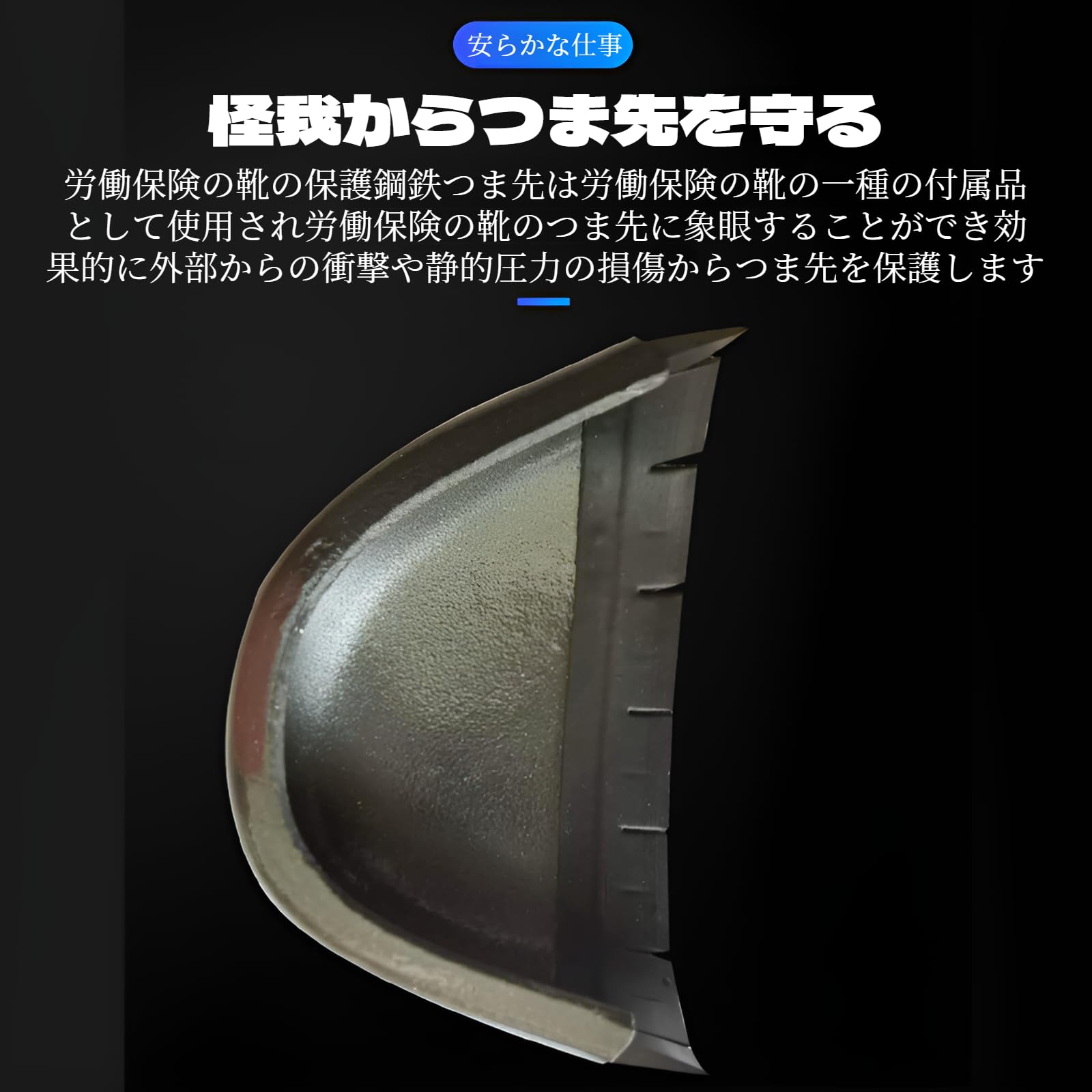 つま先カバー 1ペア 鋼先芯 つま先保護 安全靴 カバー 作業 工場 倉庫 機械 金属 現場訪客用 電車通勤用 気軽に安全靴化 つま先プロテクター 保護カップ キャップ スチール つま シューズカバー