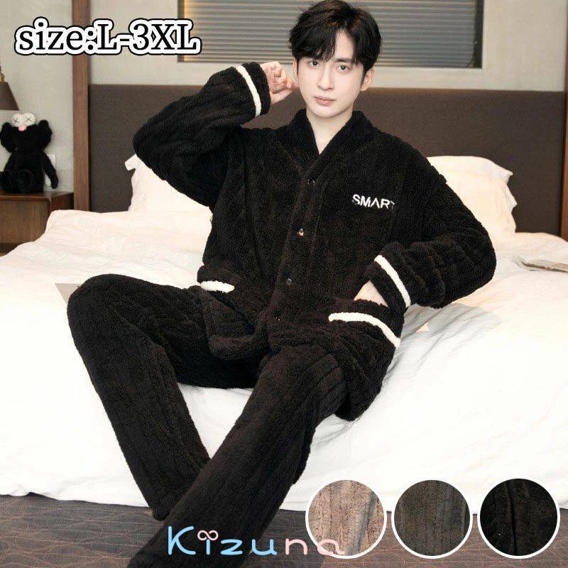 パジャマ メンズ 部屋着 ルームウェア 上下セット あったか L LL 3L 4L 大きいサイズ セットアップ フランネル かわいい 可愛い おしゃれ 厚手 暖かい 冬 冬用 長袖 もこもこ