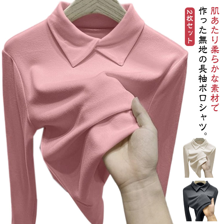 2枚セット ポロシャツ レディース 長袖 tシャツ 襟付き トップス カットソー スリム 微起毛 春 秋 冬 春服 春物 秋服 冬服 長袖tシャツ ビジネス 仕事 ス カジュアル