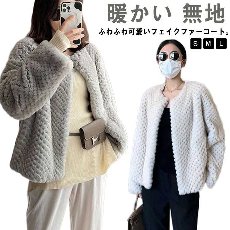 ボアアウター 無地 暖かい モコモコ ショット丈 ボアコート レディース 60代 50代 40代 秋冬 ノーカラー フェイクファーノ 30代