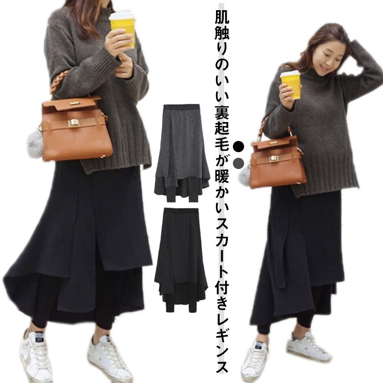 ~4 スカート付きレギンス 選べる裏起毛 体型カバー 暖かい ストレッチ