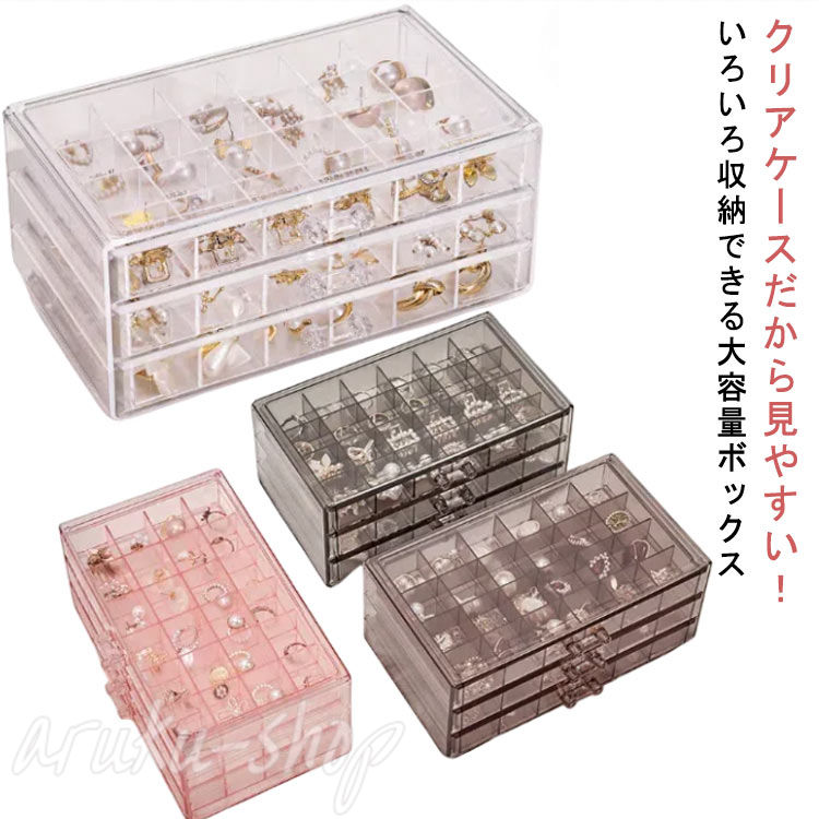 ビーズケース アクセサリー 収納 アクセサリーケース ピアスケース クリア 3段 ジュエリーポーチ ボックス ジュエリーケース 防塵 整理整頓 仕切り 入れ物 収納ケ コレクション
