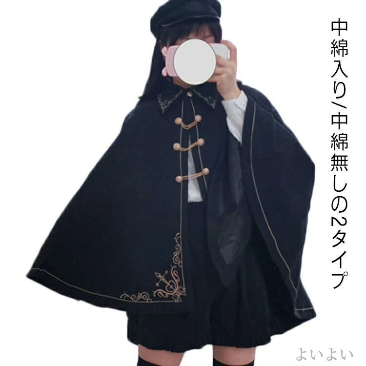 【送料無料】格好いい ケープ 刺繍ラシャコート ゴスロリ 中綿