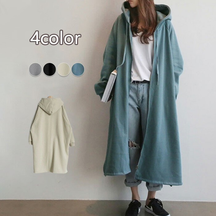 パーカー 裏起毛 ロング丈 ジャケット アウター 長袖 無地 ゆったり 冬 春 秋冬 パーカーコート 大人 ロング丈コート 切り替え 防寒 暖かい 秋コート 冬コート ファッション 黒 ブラック 大きいサイズ 通勤