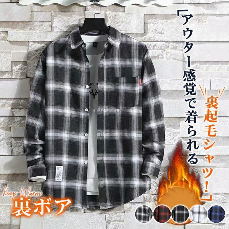 チェックシャツ メンズ 裏起毛 防寒 冬服 長袖 開襟 裏ボア 暖かい あったか 厚手 トップス ビジネスシャツ 通勤通学対応 保温性抜群で快適な着心地の防寒シャツ カジュアルシャツ