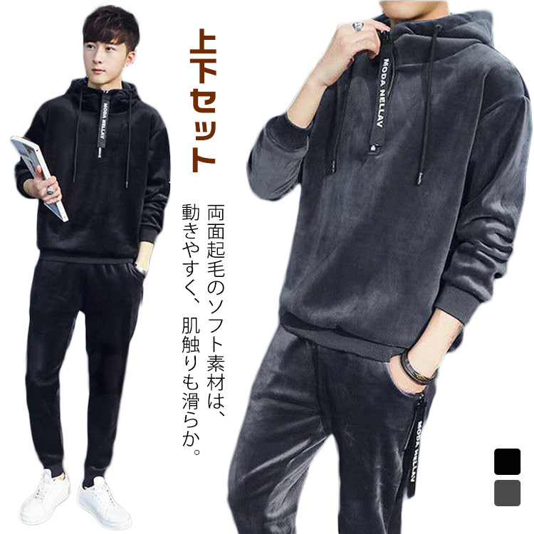 セットアップ 冬 メンズ ベロア ジャージ 上下セット 秋冬 両面起毛 暖かい パーカー ジョガーパンツ 大きいサイズ おしゃれ 韓国ファッション